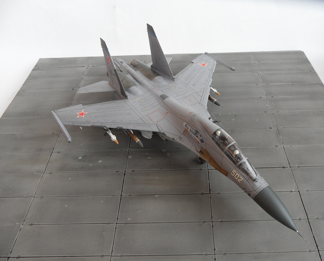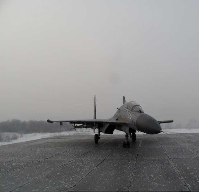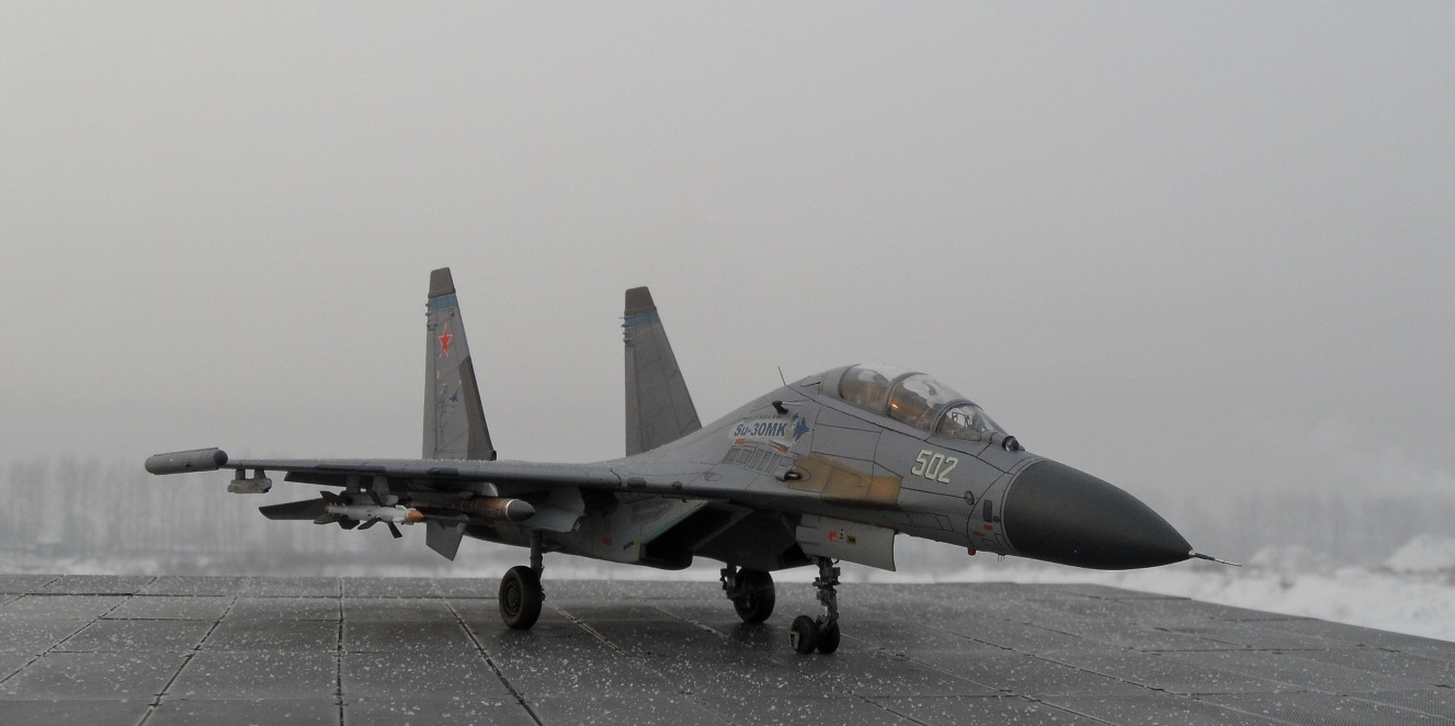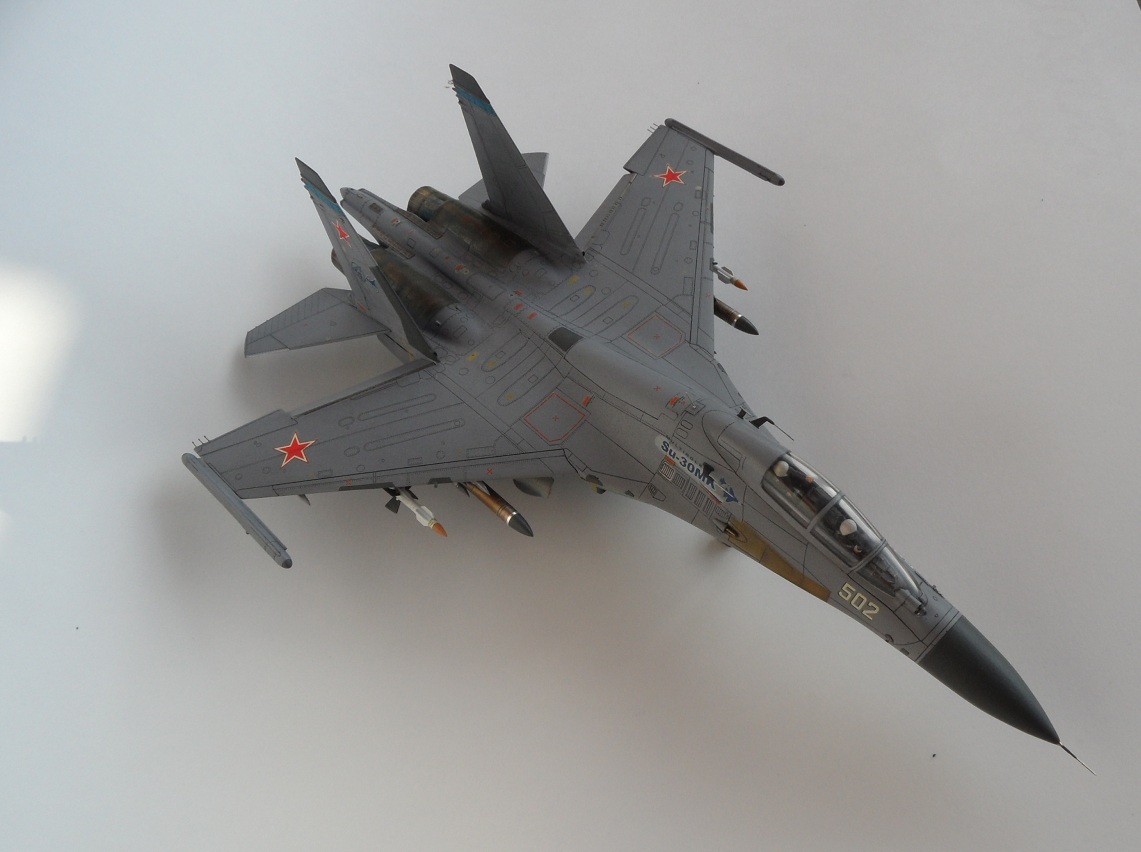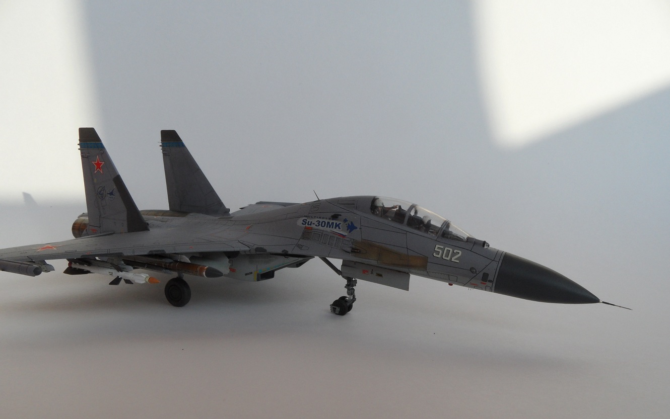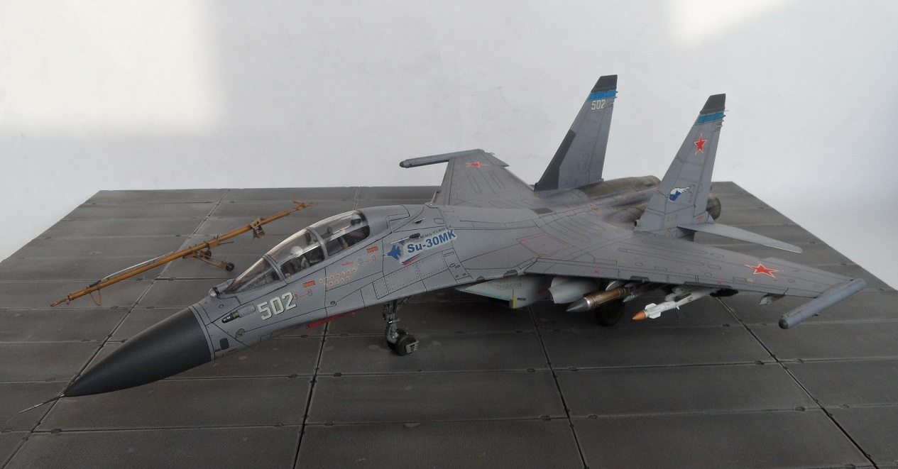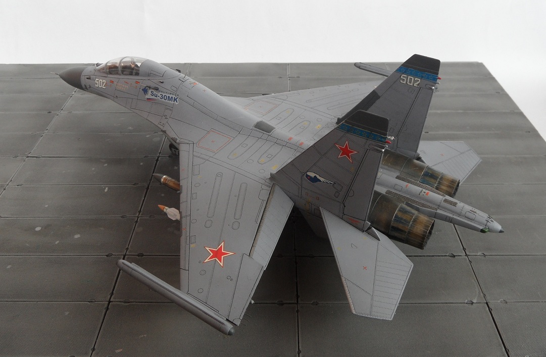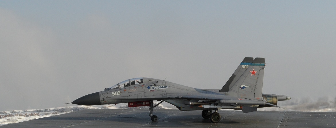 Всем привет! Представляю вашему вниманию очередную работу- Су 30мкк, построить сей самолет мечтал давно. По сборке набор несоставил трудностей, за исключением шва на стекле, и перехода на носовой части- стыковка пресс форм. В отношении матчасти проблемы имеются- весьма странно, ведь самолет то в китае известен до болтика. Самолет мне помог приобрести Владимир , за что ему ОГРОМНОЕ СПАСИБО! , иначе я бы его еще только начал строить. При постройке были доработаны и переделаны- стойки шасси, колеса экипаж, отпилены закрылки, доработал немного ниши шасси, пушка- игла шприца, использовано травление Дрим Моделс, ПВД-Дрим Моделс, сопла из металла-Дрим Моделс, кстати с соплами вышел косяк, потерял одну внутреннюю часть, пришлось делать залипуху из штатных сопел- тупо вставил их в металлические, так же испортил покрышки на задних колесах, пришлось штатные колеса просверлить и в них вставить экипажевские диски. Травление здорово преобразило модель и помогло в постройке, вообще от работы с Дрим Моделс только положительные эмоции))). Так же я заметил что почти все игнорируют маленькое отверстие по правому борту над воздухозаборником- оттуда выбрасываются гильзы от пушки ГШ, ну и еще по мелочам. В общем это все доработки- миллиметры неловил, помойму самолет похож на себя, потому меня он устроил на все сто. В кабине летчики из набора пилоты нато от Хасегавы. Ракеты повесил временные, раззорился на дрим моделовские- и на Су 27 сразу повешу). Думаю будут вопросы по декали- декаль бегемот мне досталась бракованной и потому я кое как перевел надпись Су 30 МКК синего цвета, церная просто неотклеилась от основы, обратите внимание- подложка белая, вся декаль переводилась с такой белой основой, часть вообще нехотела отклеиваться. Все почти пришлось резать по контуру, еще хорошо что у меня сохранилась старые остатки такой деки- кое что взял оттуда. Потому косяк. Модель окрашена из баллончика Мотип+ кисть Ревелл. Побежалость изобразил пигментами Тамия. Погода у нас нерадует- 30 и выше, потому фотосессия неслишком уж вышла- руки отмерзают за здравствуй), в общем то и все, приятного просмотра!