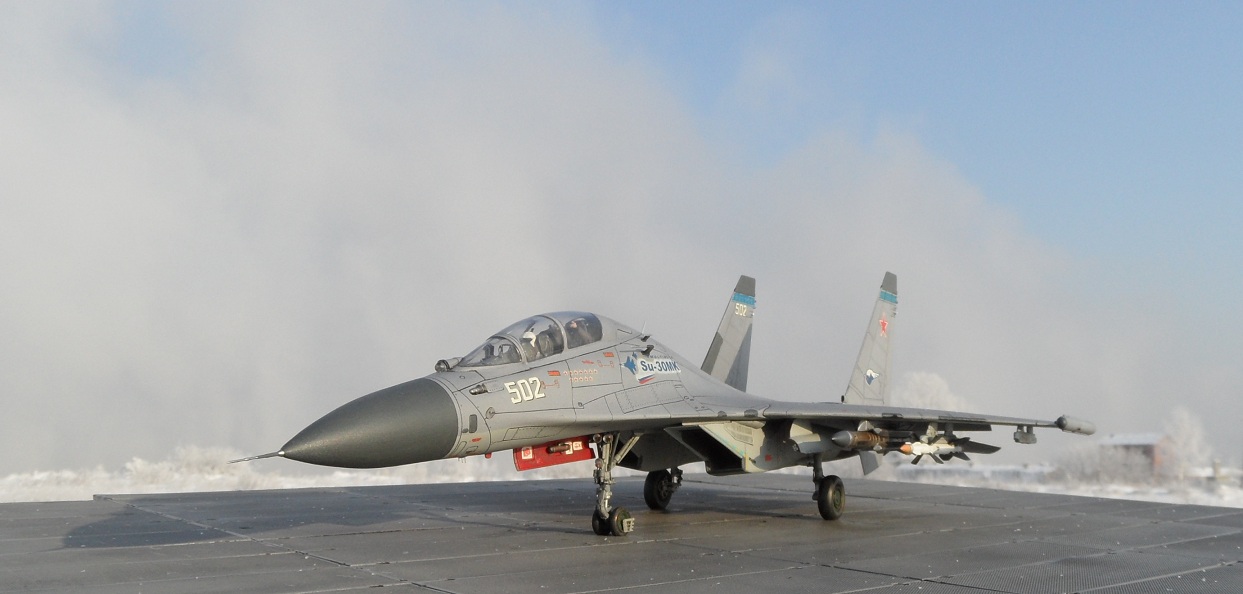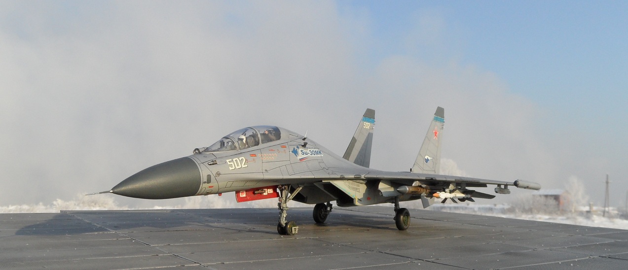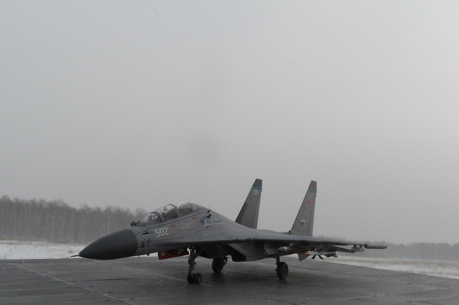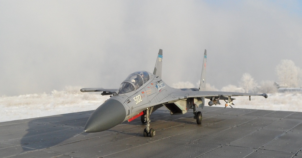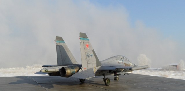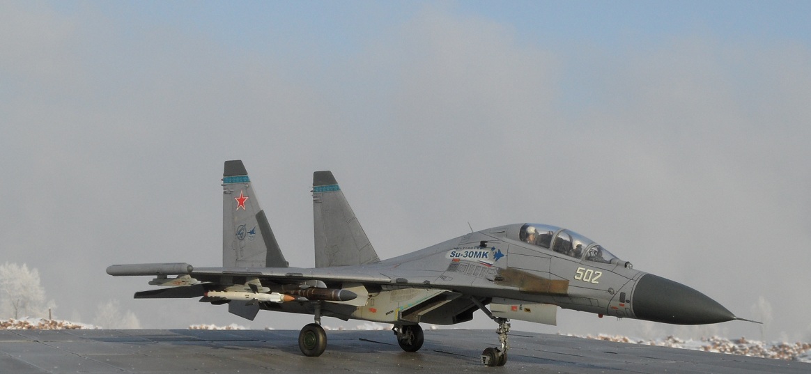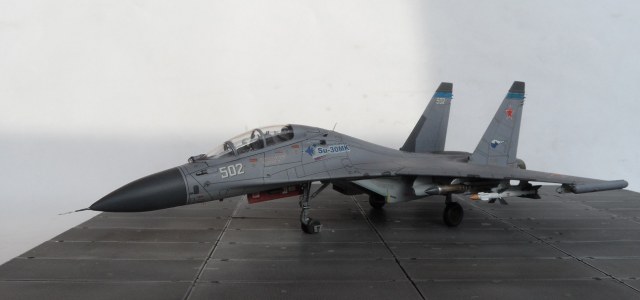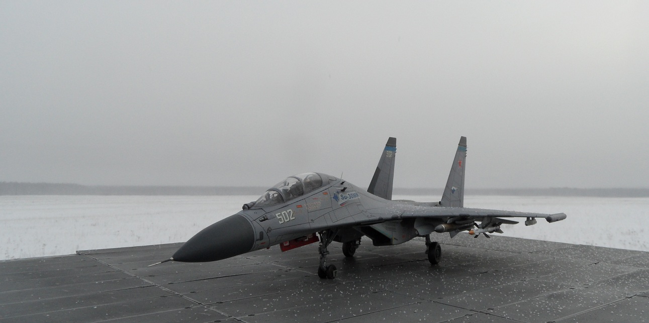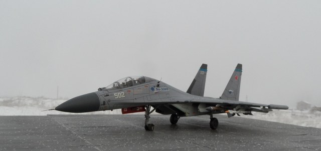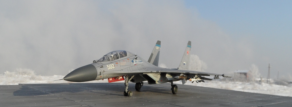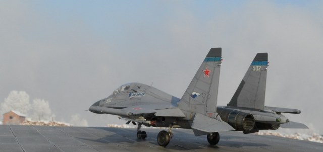 Всем привет! Представляю вашему вниманию очередную работу- Су 30мкк, построить сей самолет мечтал давно. По сборке набор несоставил трудностей, за исключением шва на стекле, и перехода на носовой части- стыковка пресс форм. В отношении матчасти проблемы имеются- весьма странно, ведь самолет то в китае известен до болтика. Самолет мне помог приобрести Владимир , за что ему ОГРОМНОЕ СПАСИБО! , иначе я бы его еще только начал строить. При постройке были доработаны и переделаны- стойки шасси, колеса экипаж, отпилены закрылки, доработал немного ниши шасси, пушка- игла шприца, использовано травление Дрим Моделс, ПВД-Дрим Моделс, сопла из металла-Дрим Моделс, кстати с соплами вышел косяк, потерял одну внутреннюю часть, пришлось делать залипуху из штатных сопел- тупо вставил их в металлические, так же испортил покрышки на задних колесах, пришлось штатные колеса просверлить и в них вставить экипажевские диски. Травление здорово преобразило модель и помогло в постройке, вообще от работы с Дрим Моделс только положительные эмоции))). Так же я заметил что почти все игнорируют маленькое отверстие по правому борту над воздухозаборником- оттуда выбрасываются гильзы от пушки ГШ, ну и еще по мелочам. В общем это все доработки- миллиметры неловил, помойму самолет похож на себя, потому меня он устроил на все сто. В кабине летчики из набора пилоты нато от Хасегавы. Ракеты повесил временные, раззорился на дрим моделовские- и на Су 27 сразу повешу). Думаю будут вопросы по декали- декаль бегемот мне досталась бракованной и потому я кое как перевел надпись Су 30 МКК синего цвета, церная просто неотклеилась от основы, обратите внимание- подложка белая, вся декаль переводилась с такой белой основой, часть вообще нехотела отклеиваться. Все почти пришлось резать по контуру, еще хорошо что у меня сохранилась старые остатки такой деки- кое что взял оттуда. Потому косяк. Модель окрашена из баллончика Мотип+ кисть Ревелл. Побежалость изобразил пигментами Тамия. Погода у нас нерадует- 30 и выше, потому фотосессия неслишком уж вышла- руки отмерзают за здравствуй), в общем то и все, приятного просмотра!