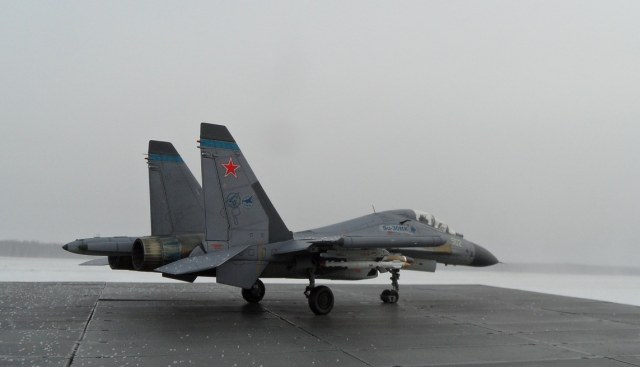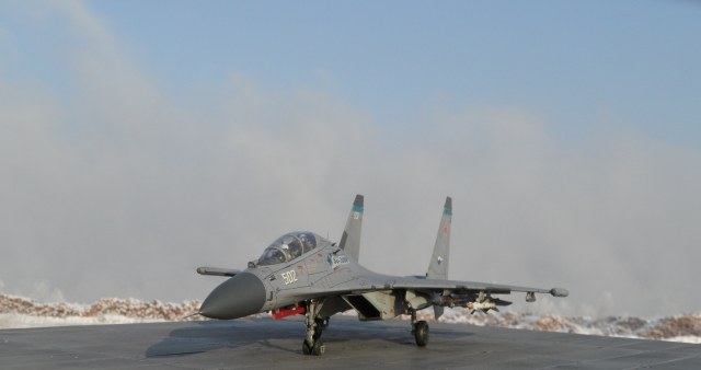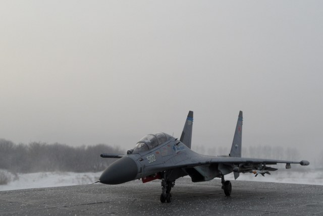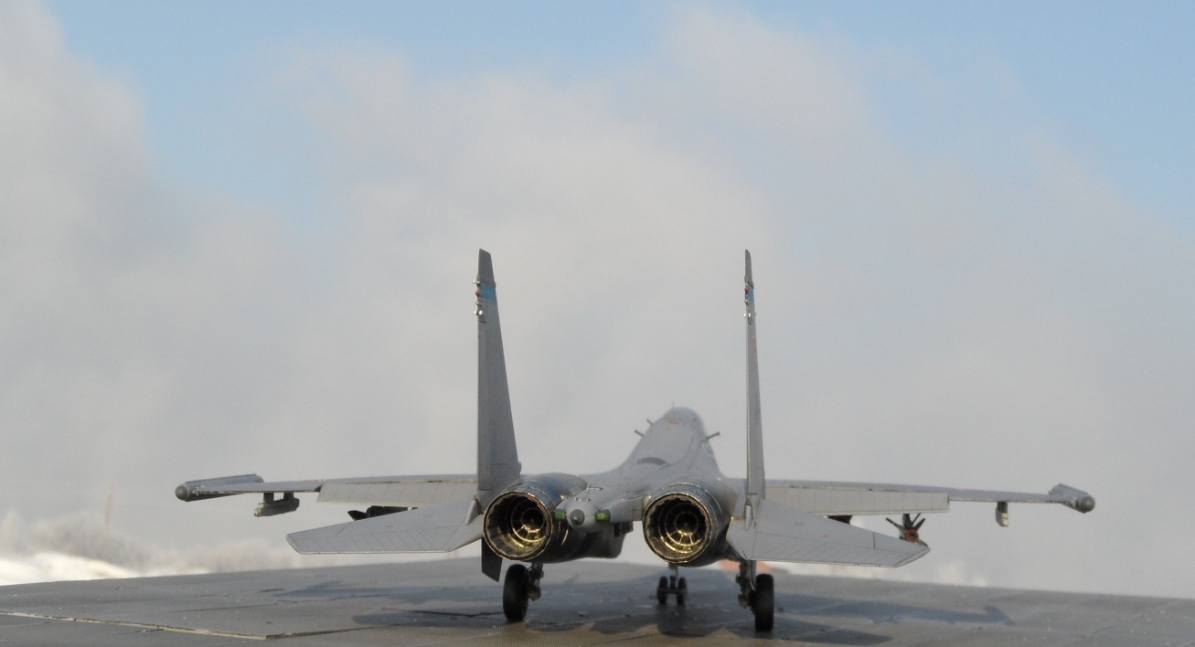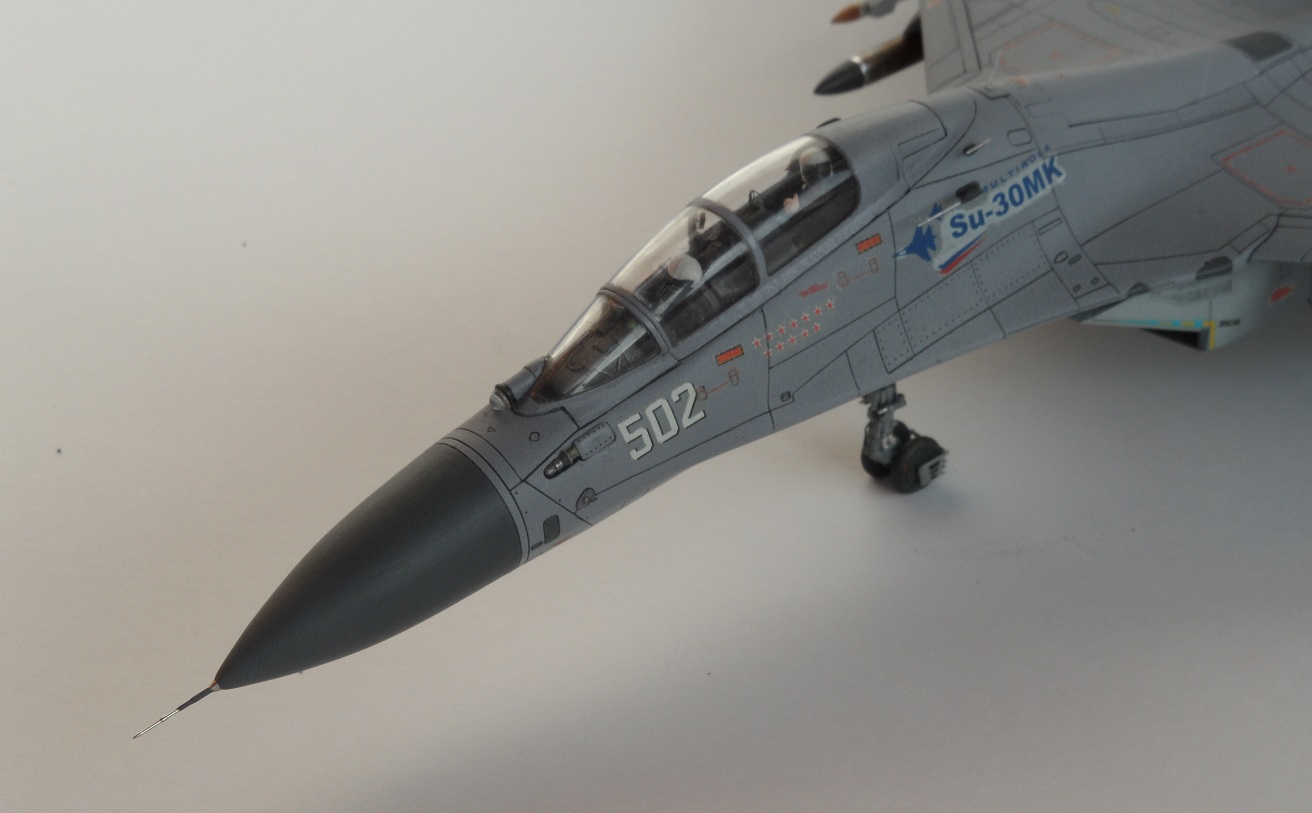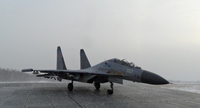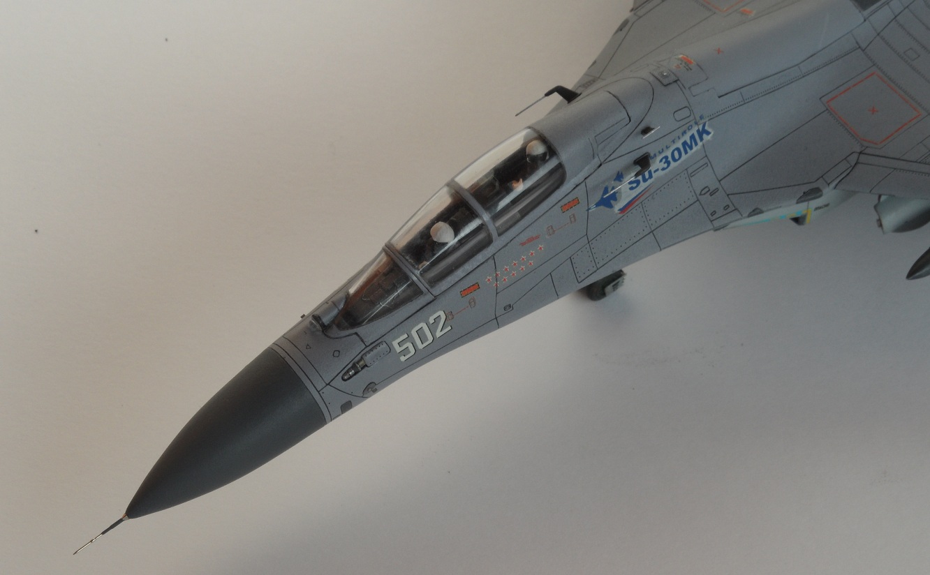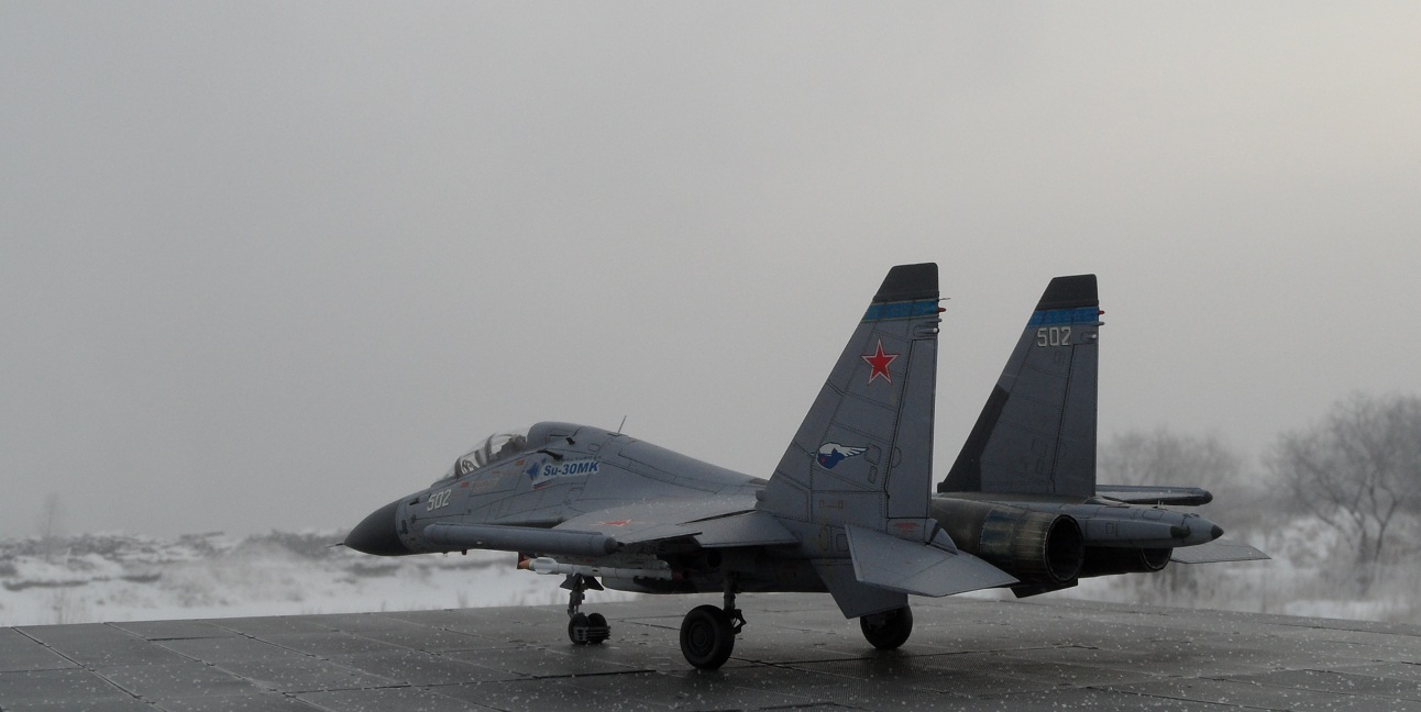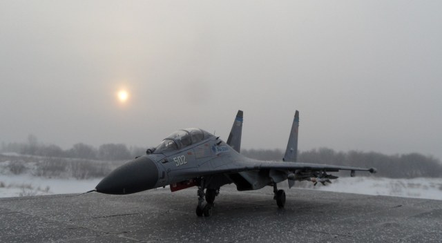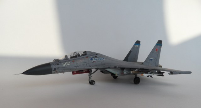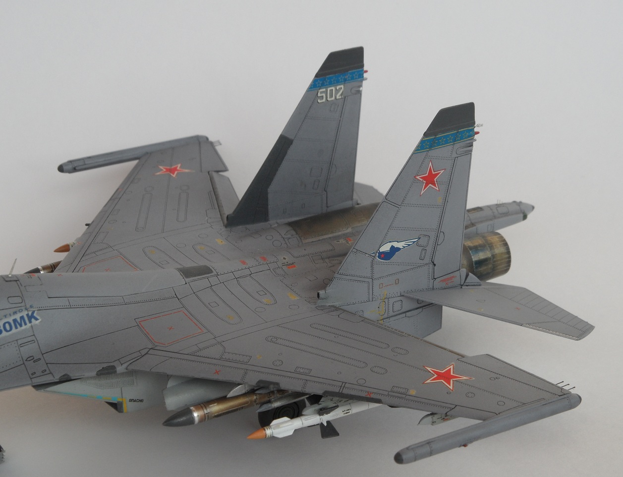 Всем привет! Представляю вашему вниманию очередную работу- Су 30мкк, построить сей самолет мечтал давно. По сборке набор несоставил трудностей, за исключением шва на стекле, и перехода на носовой части- стыковка пресс форм. В отношении матчасти проблемы имеются- весьма странно, ведь самолет то в китае известен до болтика. Самолет мне помог приобрести Владимир , за что ему ОГРОМНОЕ СПАСИБО! , иначе я бы его еще только начал строить. При постройке были доработаны и переделаны- стойки шасси, колеса экипаж, отпилены закрылки, доработал немного ниши шасси, пушка- игла шприца, использовано травление Дрим Моделс, ПВД-Дрим Моделс, сопла из металла-Дрим Моделс, кстати с соплами вышел косяк, потерял одну внутреннюю часть, пришлось делать залипуху из штатных сопел- тупо вставил их в металлические, так же испортил покрышки на задних колесах, пришлось штатные колеса просверлить и в них вставить экипажевские диски. Травление здорово преобразило модель и помогло в постройке, вообще от работы с Дрим Моделс только положительные эмоции))). Так же я заметил что почти все игнорируют маленькое отверстие по правому борту над воздухозаборником- оттуда выбрасываются гильзы от пушки ГШ, ну и еще по мелочам. В общем это все доработки- миллиметры неловил, помойму самолет похож на себя, потому меня он устроил на все сто. В кабине летчики из набора пилоты нато от Хасегавы. Ракеты повесил временные, раззорился на дрим моделовские- и на Су 27 сразу повешу). Думаю будут вопросы по декали- декаль бегемот мне досталась бракованной и потому я кое как перевел надпись Су 30 МКК синего цвета, церная просто неотклеилась от основы, обратите внимание- подложка белая, вся декаль переводилась с такой белой основой, часть вообще нехотела отклеиваться. Все почти пришлось резать по контуру, еще хорошо что у меня сохранилась старые остатки такой деки- кое что взял оттуда. Потому косяк. Модель окрашена из баллончика Мотип+ кисть Ревелл. Побежалость изобразил пигментами Тамия. Погода у нас нерадует- 30 и выше, потому фотосессия неслишком уж вышла- руки отмерзают за здравствуй), в общем то и все, приятного просмотра!