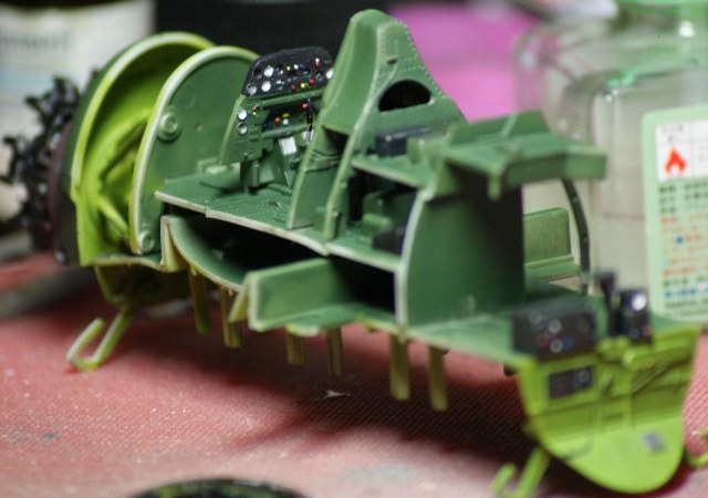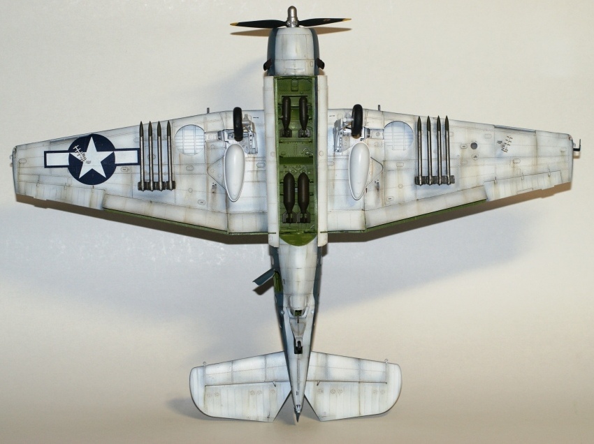 Борис - голубой цвет темноват из за того что смывка черная она его и притемнила а так это таже краска что и на Хелкете. Бомбы окрашены в Олив Драб просто освещение плоховато сделал видимо, а надписей на декали в комплекте ни каких небыло.