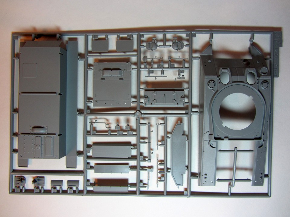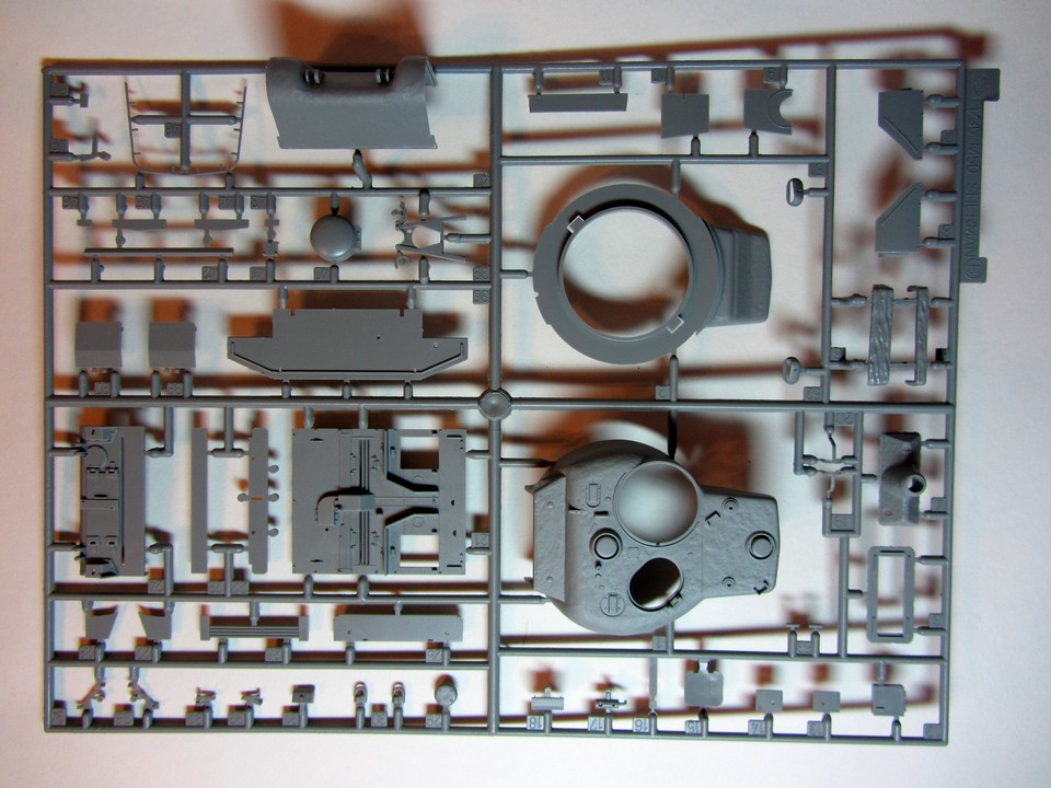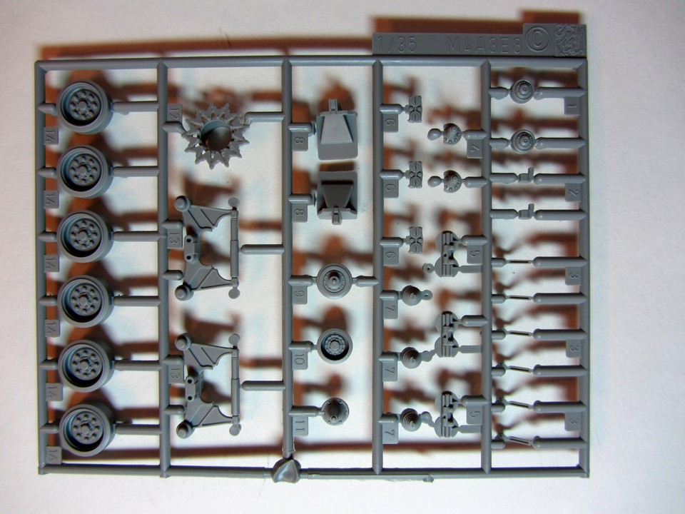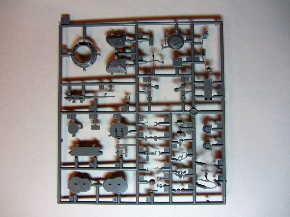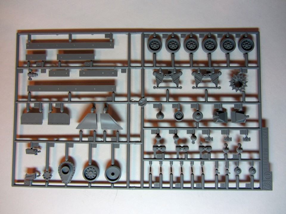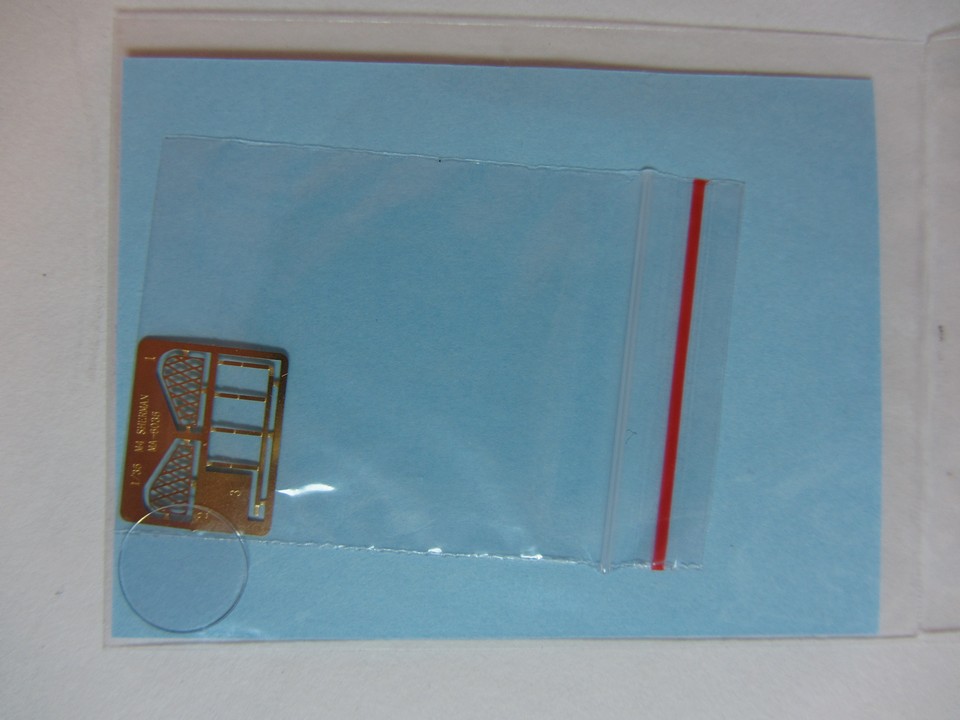 три гусеничные ленты из которых надо склеить две )))), стекло для фонаря, совсем крохотная платка фототравления.
