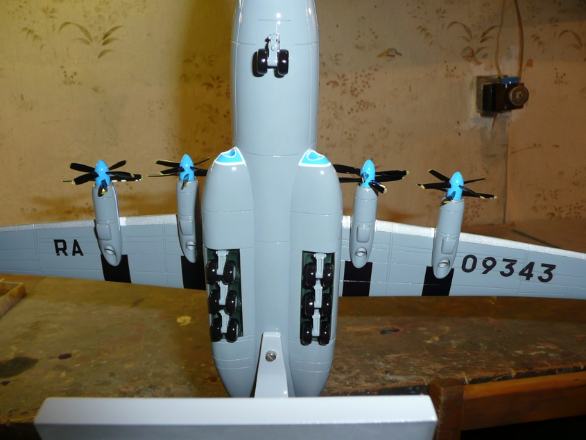 Очень красивая и аккуратная модель, но... вот подставка, на которой установлен самолет "с остановленными движками", на мой взгляд, портит все впечатление. Этот гигант смотрелся бы гораздо органичнее на "постаменте" имитирующем траву или участок ВПП.