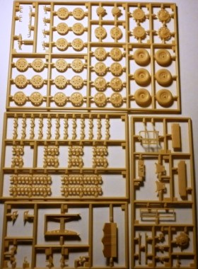 Сей кит поражает количеством деталей расположенных на 13 (!) литниках (7 литников для орудия и 6 для тягача). Каждая из артиллерийских систем из набора по уровню сложности имеет оценку «5» - максимальную для моделей этой фирмы. Если прибавить четвертую сложность тягача, то получается «9». Производитель немногоJ приуменьшил в оценке сборки всего набора))). Инструкция располагается на 20(!) страницах, очень информативна и понятна. Качество отливок отличное и стандартное для этой фирмы. Почти все мелкие детали можно отнести к масштабно отлитым. Облой и смещение отсутствуют. Стыковка деталей и сборка узлов не требуют корректировки. На тягач имеется тонкая прозрачная полоска для имитации стекла.