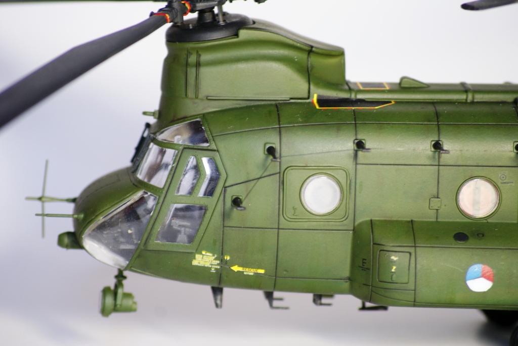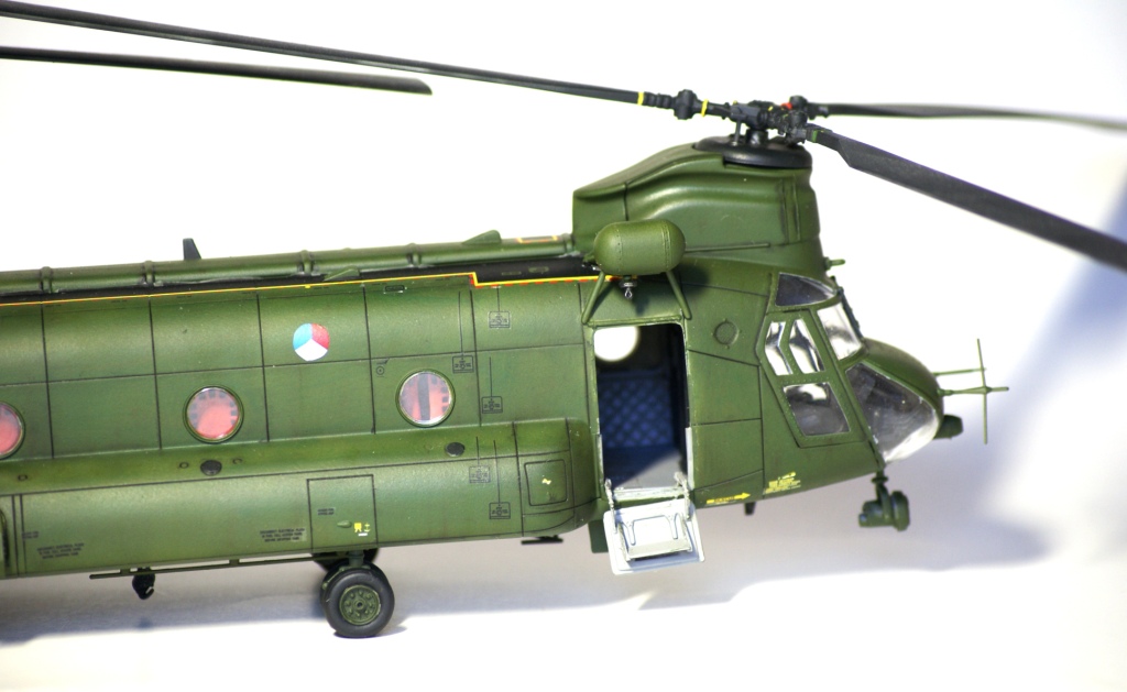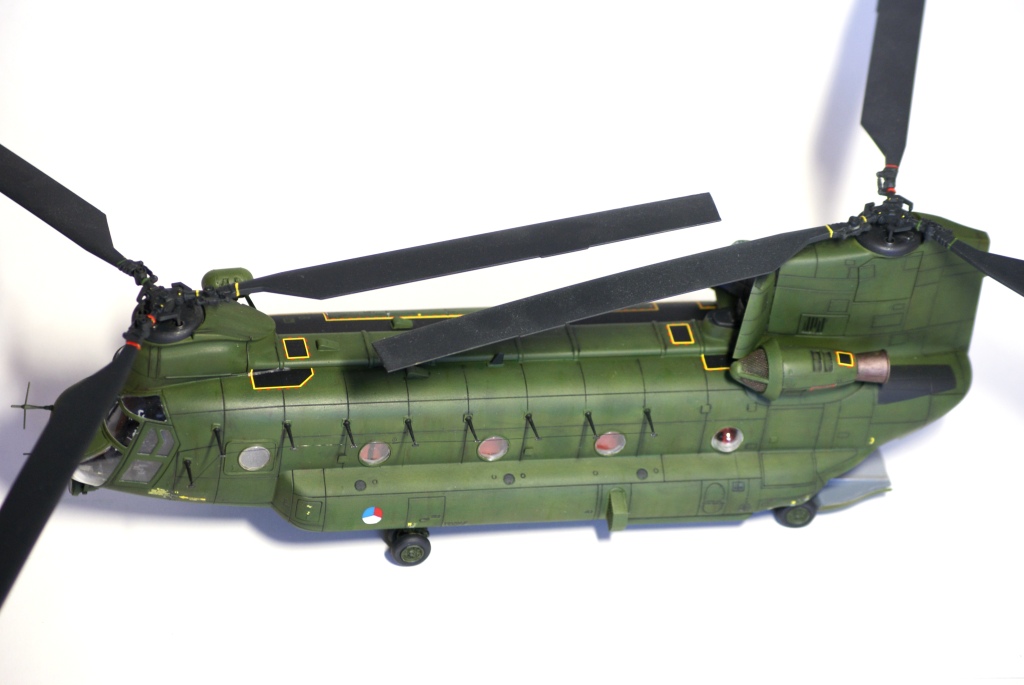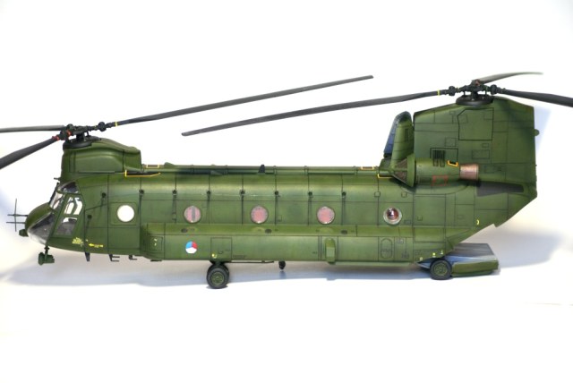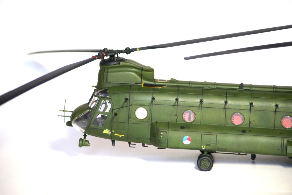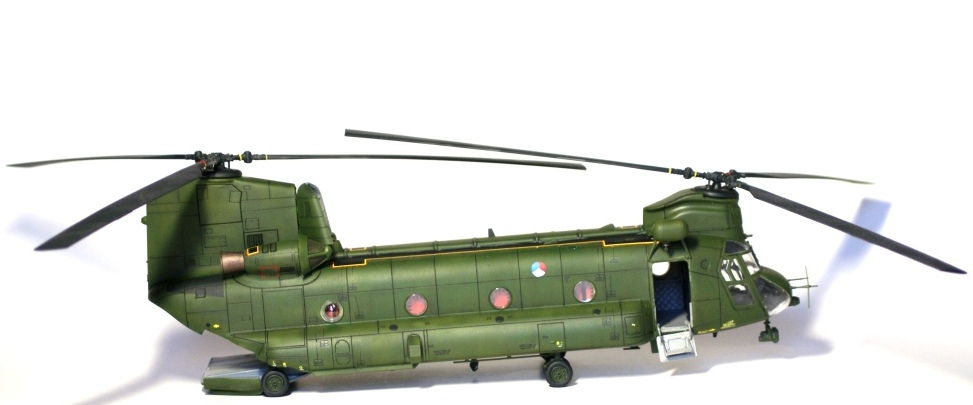 Вертолет построен без доработок чисто изкоробка, изначально планировалось строить тот борт что предлогалось в инструкции, но в процессе принял решение на постройку Нидерландского варианта, но как обычно это бывает первое решение было правильным. После того как нанес базовый слой выяснилось что такой модификации на вооружение нидерландов нет или нет информации о такой, а в данный базовый цвет окрашивались только их борта. Вот и пришлось сделать борт без номера но с трех цветным значком Нидерландов.