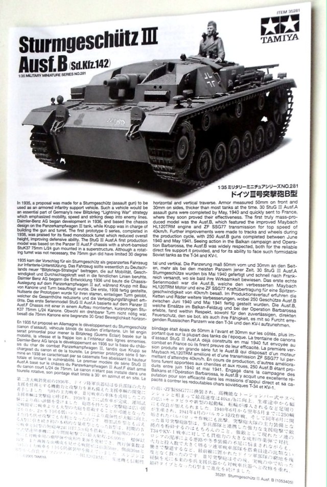 Итак, модель штурмового орудия StuG III ausf. B от "Тамии" (№ 35281).