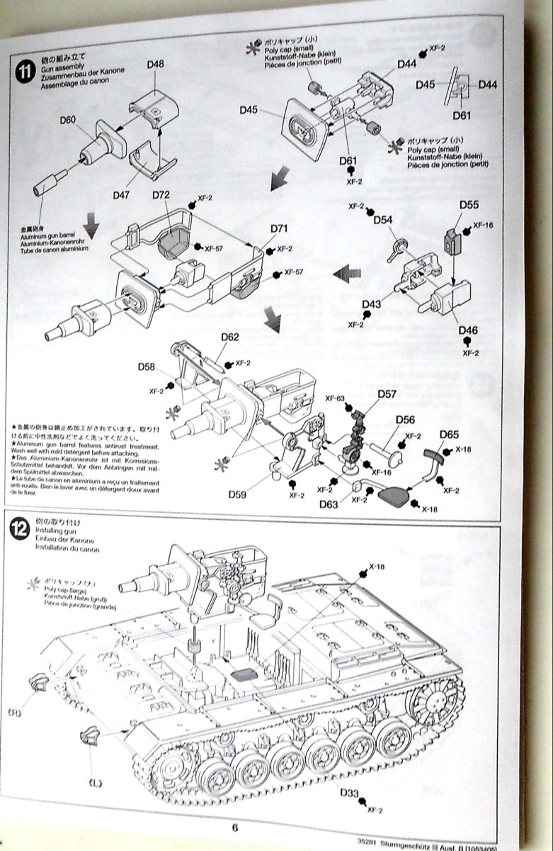 Все литники пролиты очень хорошо, нет ни облоя, ни смещений - короче, стандартное "тамиевское" качество. На литниках стоит 2005 год. В наборе имеются детали для сборки интерьера боевого отделения самоходки и одна фигурка члена экипажа.