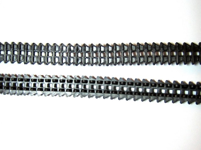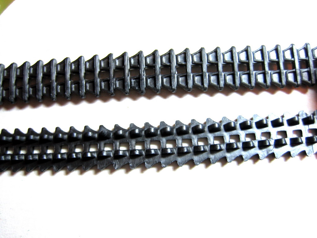 - Виниловые гусеницы очень страшные и дубовые. Сильно заметно место соединения лент. При натягивании на катки приходится растягивать так, что на звездочках и ленивцах они сильно выгибаются, о формировании какого-либо провиса речи нет вообще. Однозначно надо менять на наборные.