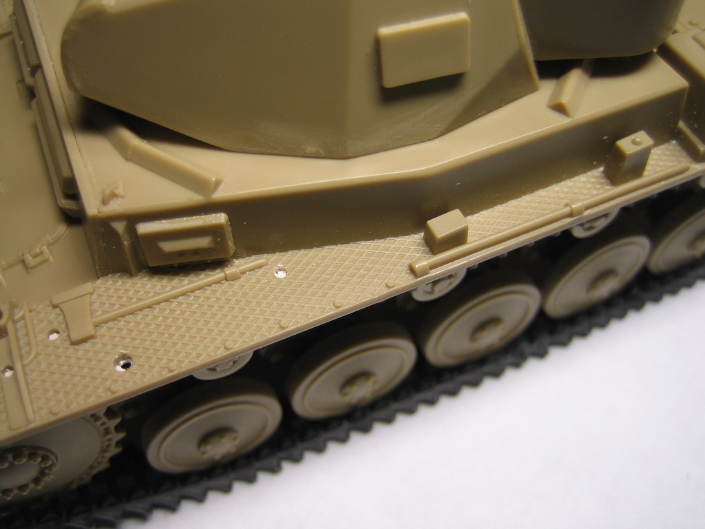 Приговор: дрова несусветные. Для придания более-менее потребного вида этому киту, по моему мнению, как минимум необходимы металлические стволы, НАБОР ФОТОТРАВЛЕНИЯ, Еще НАБОР ФОТОТРАВЛЕНИЯ, НАБОРНЫЕ ТРАКИ и куча шпаклевки, инструментов, нервов и времени. ИМХО, лучше купить того же Дрегона. Там хоть искоробку нормальную можно собрать.