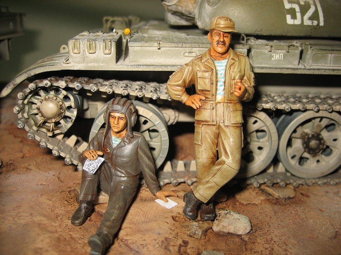 4)Танкист,который держит открытым люк МТО Т-55 выглядит как будто его облили грязью- со смывкой вы немного переборщили,если я правильно понял...