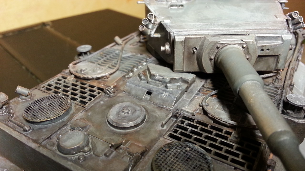 Далее слепил прибор ночного видения FG 1250 и поставил на башню. Старшие товарищи погнали меня делать грязинг и царапинг - но в новый год запасы смывок и фильтров у меня равнялись нулю - поэтому смывал собственными разбодяженными средствами. Получилось живенько...