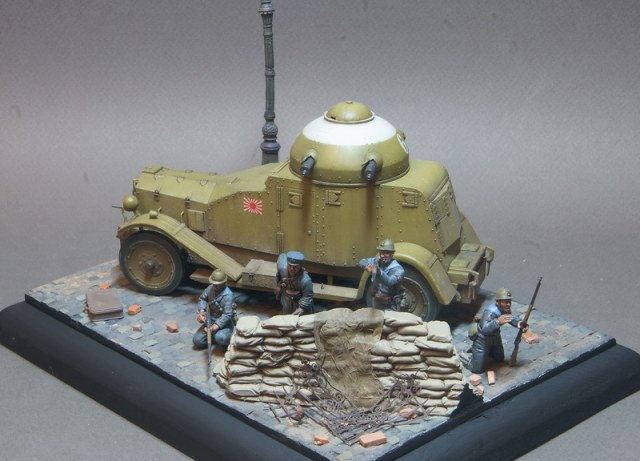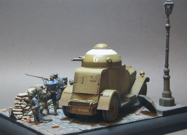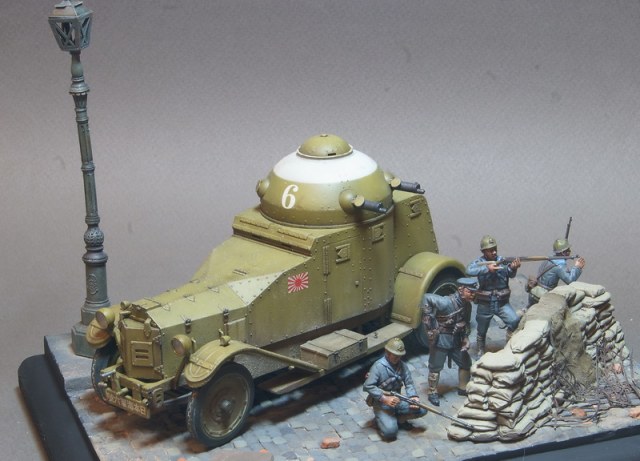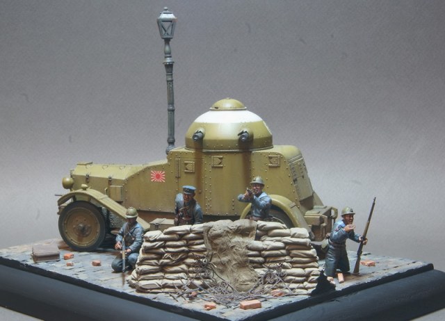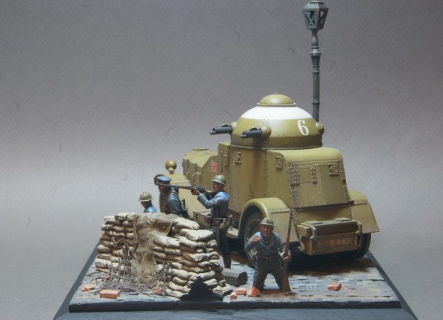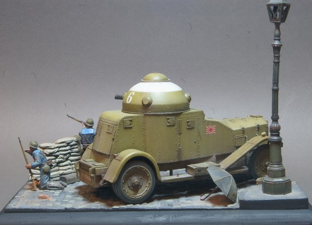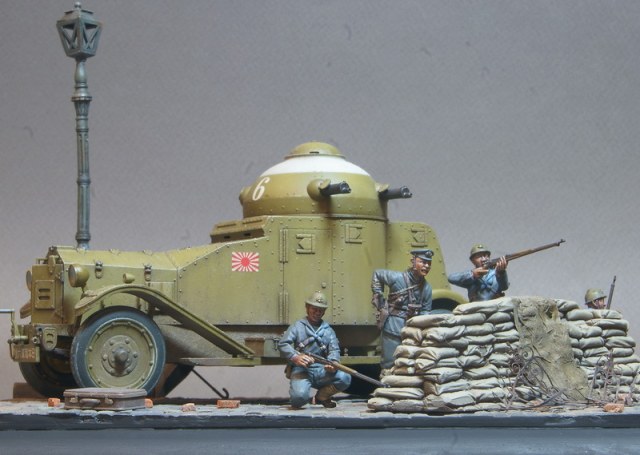 Броневик от Pit Road уже выставлялся в галерее, пришла очередь завершения этой темы. Получившаяся виньетка навеяна японским вторжением в Китай в начале 30х годов прошлого века, в котором как раз и засветились японские Crossley в рядах японских Landing Forces. Фигурки от японской же фирмы Grenadier Models, альтернатива на данную сюжетную линию отсутствует.