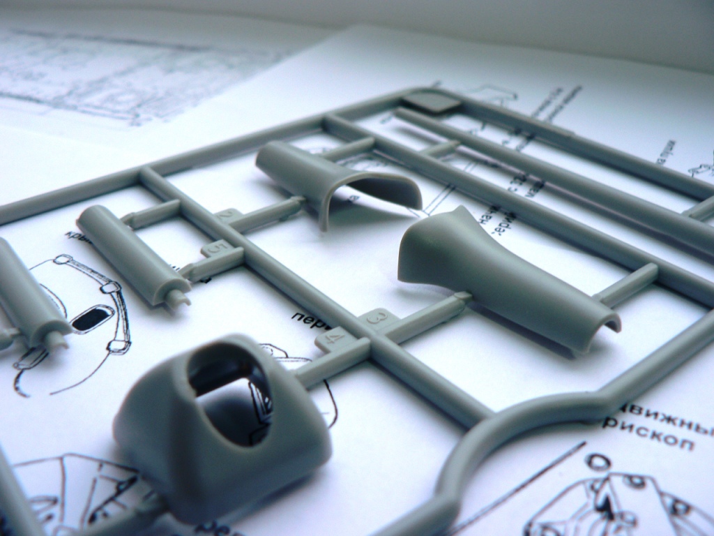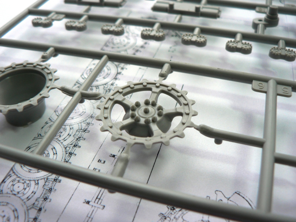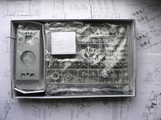 Что касается самой модели. Качество литников отличное, ни облоя ни утяжин ни сдвигов пресс-форм и пр. в этом наборе нет. Все литники упакованы в отдельные прозрачные пакетики. Башня во избежание поломок закрыта в отдельной картонной коробочке. А для двух частей корпуса в коробке отведено специальное защищенной по бокам место.