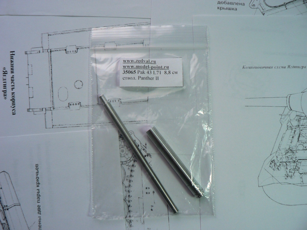 Также в комплекте есть оба ствола 7.5 см / 8.8 см. Мною был куплен точеный металлический ствол 8.8 см Pak 43 от Model-Point.