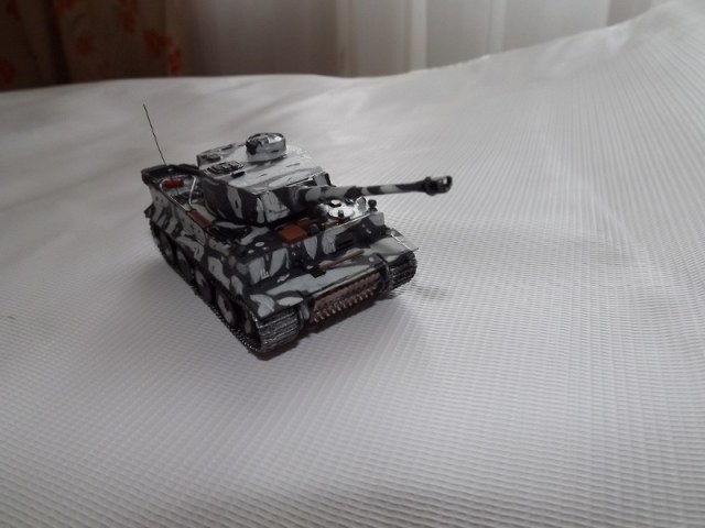 PZKPF VI (TIGER I) Выпуска предположительно до января 1943 года (нет циммеритового покрытия, окраска панцерграу). Это моя первая работа (по покраске имею ввиду) Красил акрилом от ЗВЕЗДЫ кисточками. Сам сделал только совковую лопату и антенну РСт.