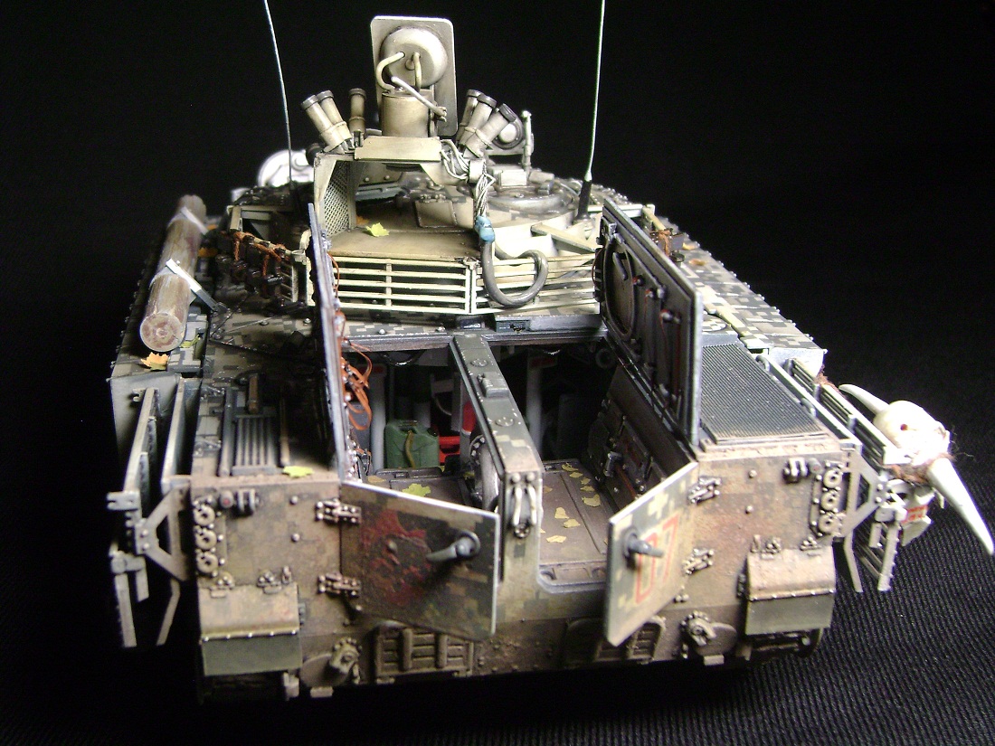 В ходе работы мной допущены ошибки в матчасти: модули динамической защиты на башне, шов на левом переднем габарите, прибор наведения, вольности в окраске интерьера.