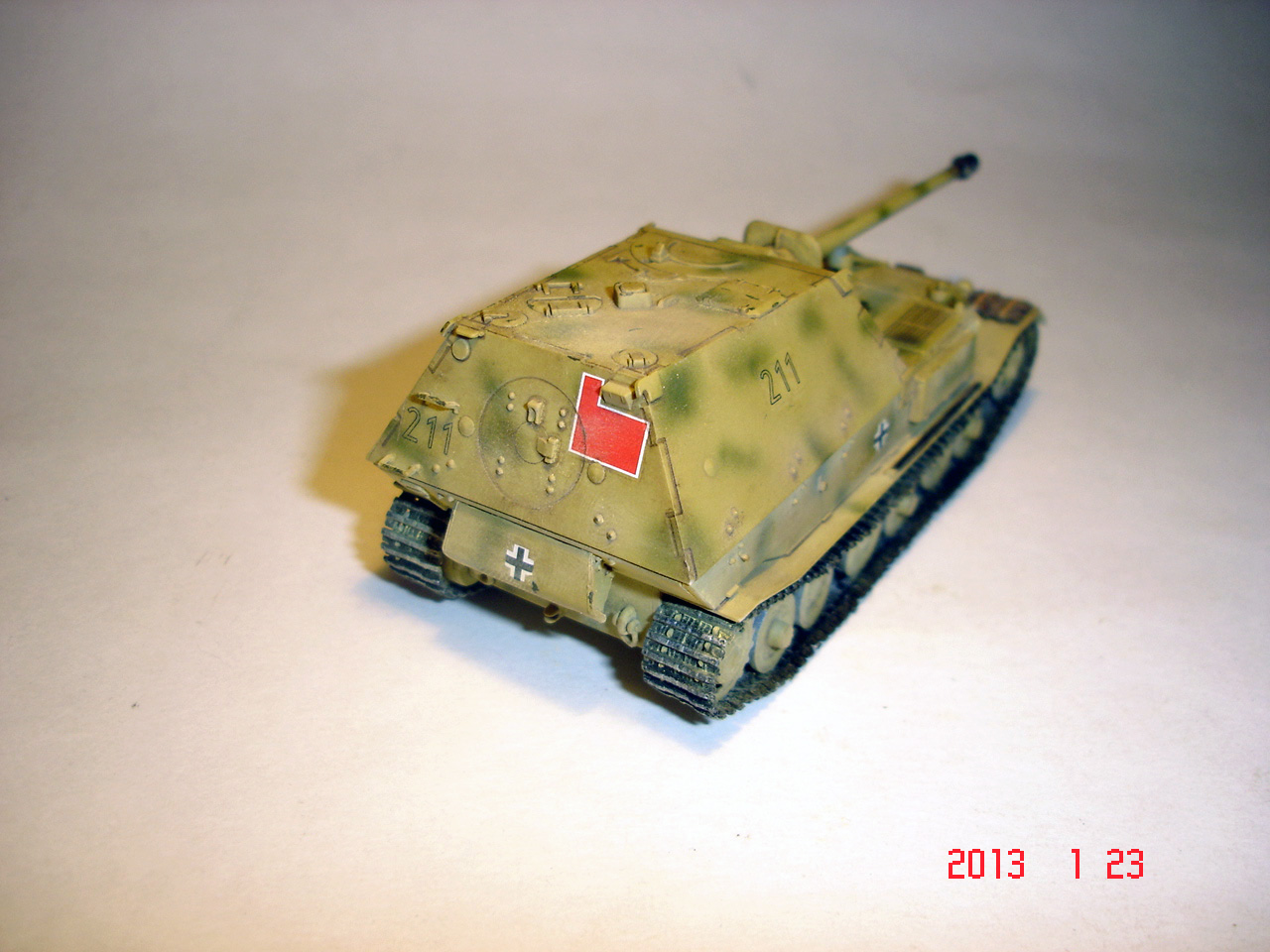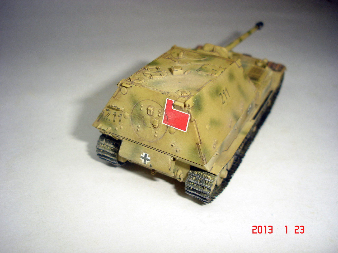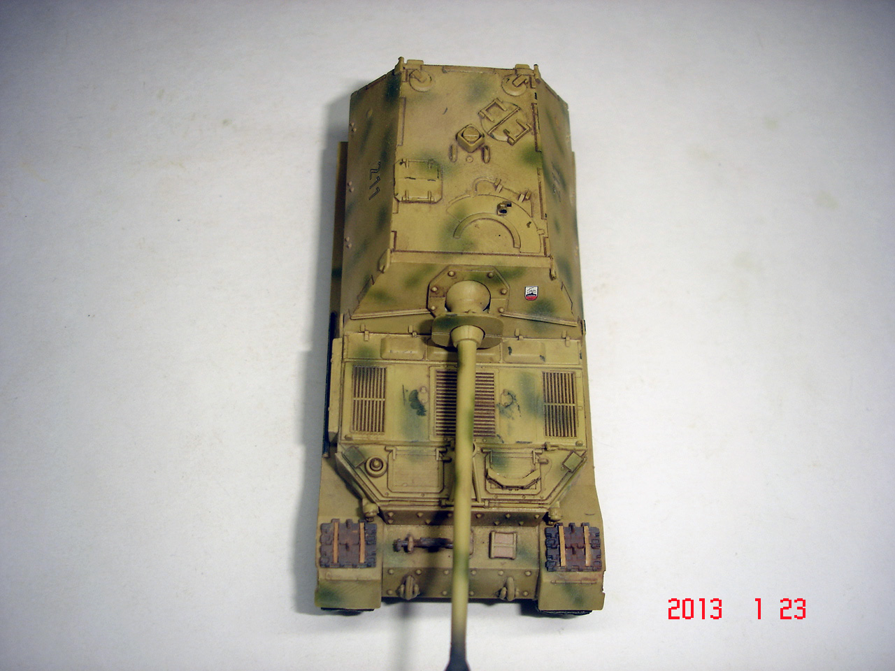 Неплохо, кроме вышесказанного, антенны можно повтыкать (кошачий ус, тонкая проволока или ворс от кисти) и по-моему отпечаток пальца на серединке крыши рубки.