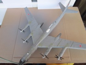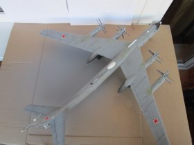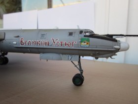 Приветствую всех!Решил попробовать выложить своих гигантов.Конечно фототь в домашних условиях не возможно,тем самым за фото сразу извиняюсь, немного потеплеет переделаю.Борт из Кипелова 76ОПЛАПа.Именной борт "Великий Устюг".По моделе:Сразу после покупки,росчитывал на большее.Собрав ТУ 22м3,ТУ160,был удивлен отсутствием деталировки в кабине пилотов.Кресла только для командира и второго пилота,качество не в дугу.Стораниями доработал пол и четыре кресла. Из Эпоксилина добавил оборудование на" голерку ",доработал антенны ,шасси,добавил гидроприводы.Еще очень сложно состыковать, две половины нос и хвост ..Расшивка беда местами не рассмотреть,как не старайся подогнать движки к крылу;КАК НЕ КРУТИСЬ БЕЗ ЗЛАТО ШПАТЛЕВКИ НЕ ОБОЙТИСЬ.Антенны некоторые отсутствуют в наборе.Место стрелка на корме по мотивам,на пушку без слез не глянешь.Доработал ШДВ,посадочные огни.Люк в передней нишше шасси,на его месте Китай-папа,оставил слеты от пресс-форм.Добавил штоки привода поворота ,передней стойки шасси,а также не достающие тяги. Дворники на стекла. Окраска из балончика,Белый,изумруд,светло-серый,светло-коричневый,лимонный, акрил "звезда.Черный,стальной ,аллюминий авто эмаль.