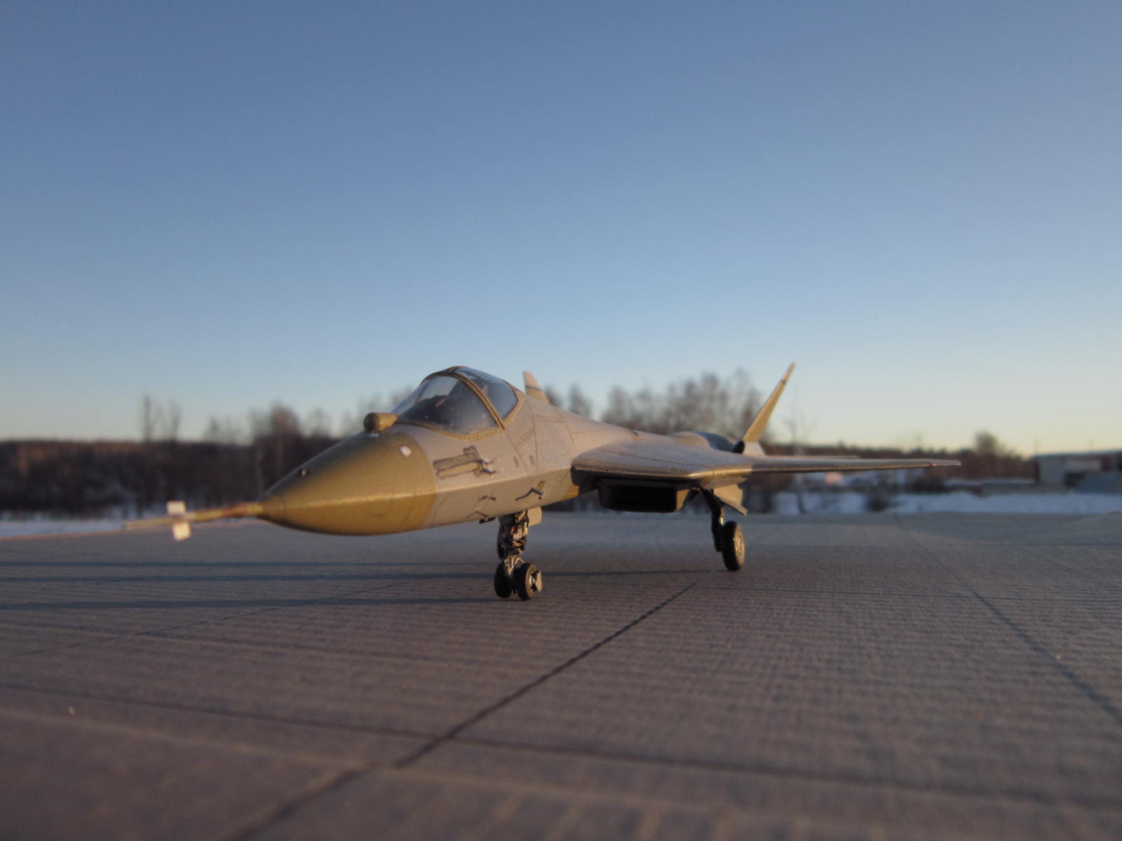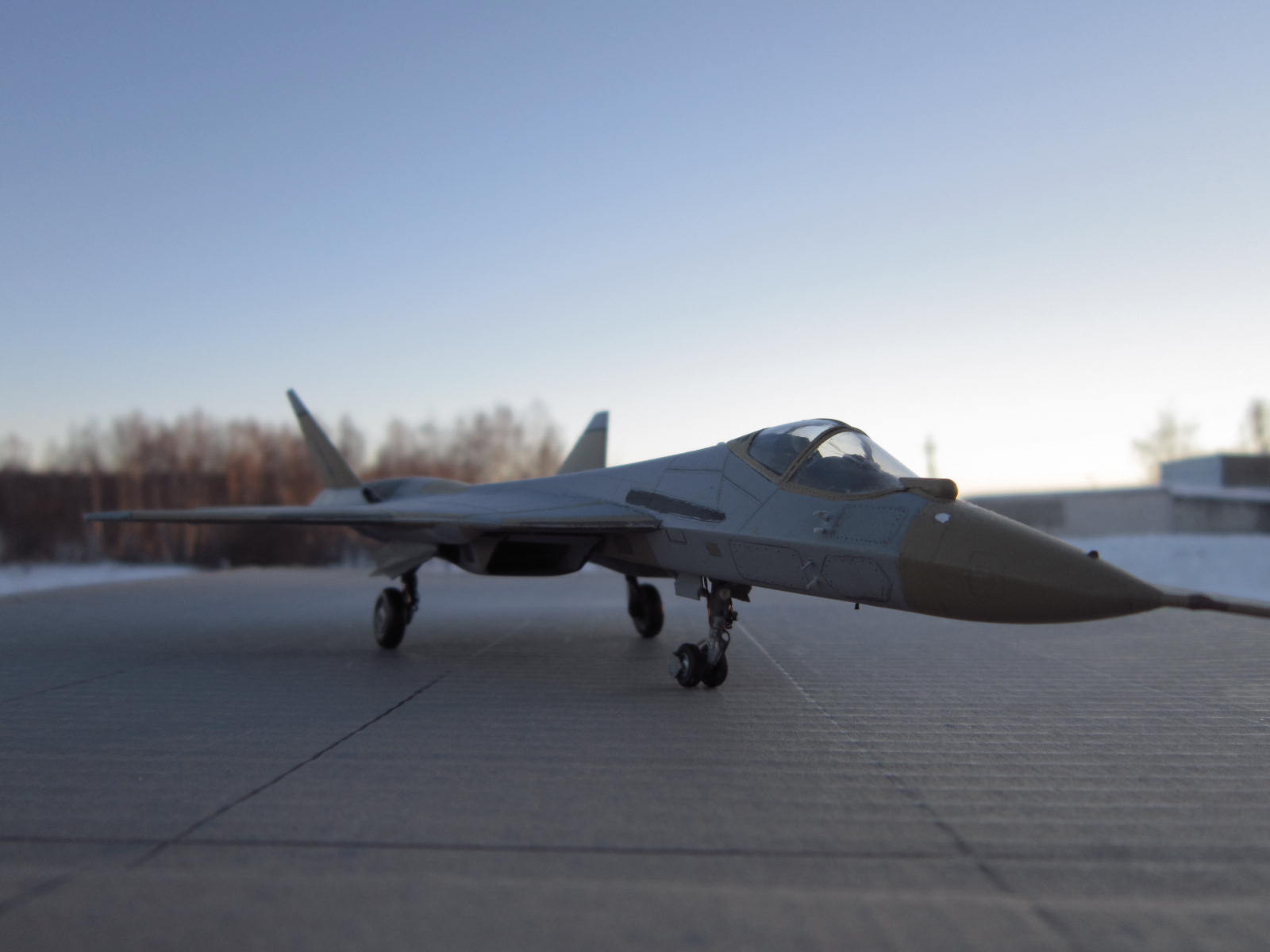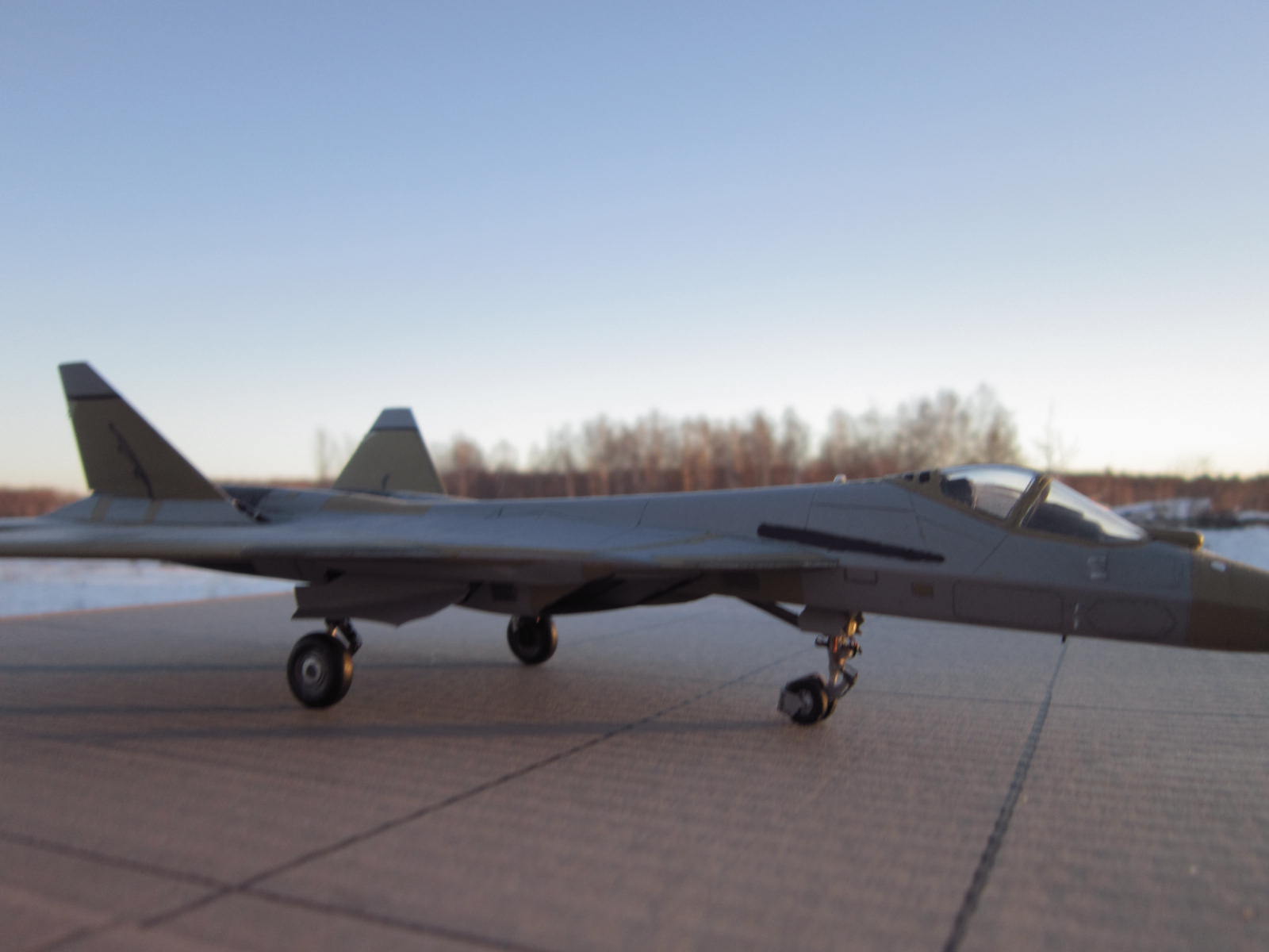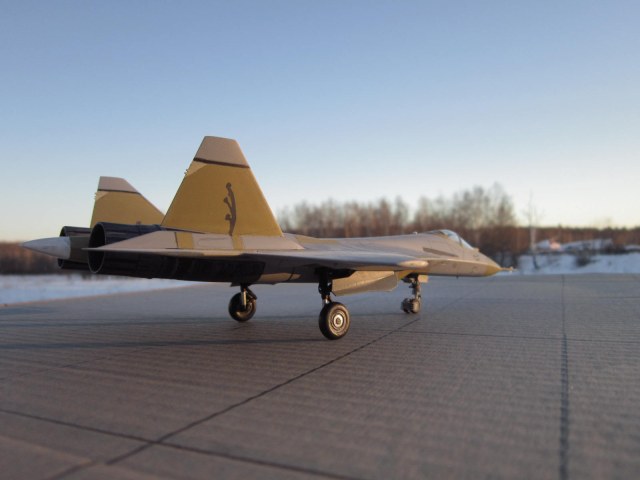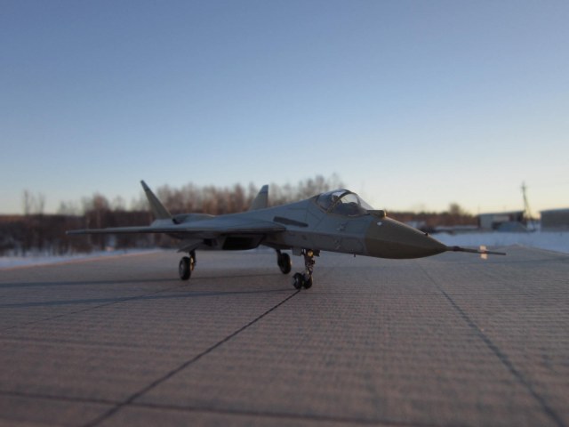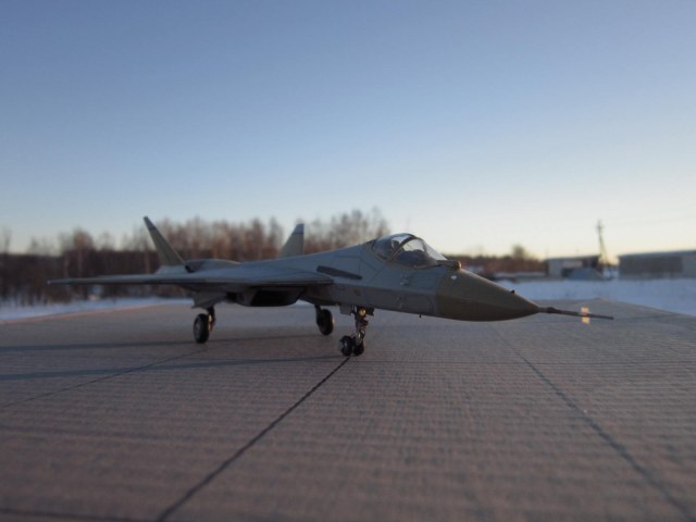 Приветствую коллеги!Решил показать Вам ,наш новый ПАК ФА.Который уже совершил" подвиг"с перелетом через всю нашу Россию.Модель уже надоедливо-известна.Очень нечего качество.Единственная упорство,стоит проявить на воздухозаборниках.В этом месте стыковочка,не совсем хороша.Модель начата на следующий день, после появления в магазине.Решил воспроизвести в грунте,выгодно смотрится среди тридцати с лишним камуфляжных.Доработки,шасси ,ниши шасси,ПВД.