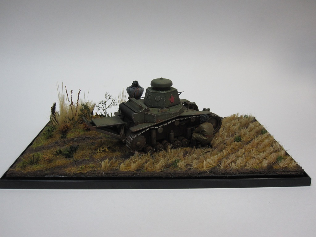 Очень приятная диорама. Особенно понравилось основание и расположение танка и экипажа.