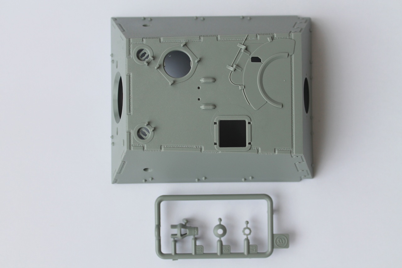 Жаль, что интерьер кроме казенника ничем более не представлен, возможность открыть люки использовать не получается. Еще не понравилось, что родные крылья надо резать, чтобы поставить травленку.
