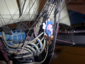 Да есть конечно замечания по такелажу, типа шлюпки не закреплены, нет обвязки пушек, якоря и т.п и окраске.