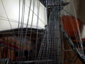 Ванты ставил непосредственно на модели, потом оплетка.Из-за незнания китайского языка не совсем соответсвует покраска оригиналу. Сказывается еще и отсутсвие интернета на то время, негде было почерпнуть красочную информацию по столь известному кораблю. Каюсь.