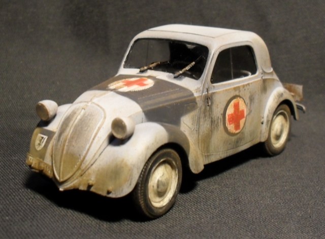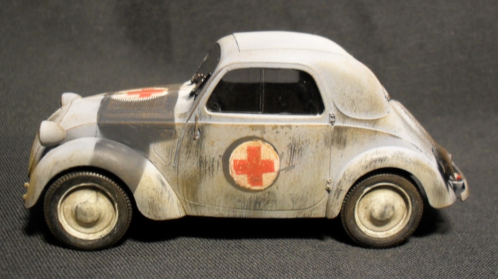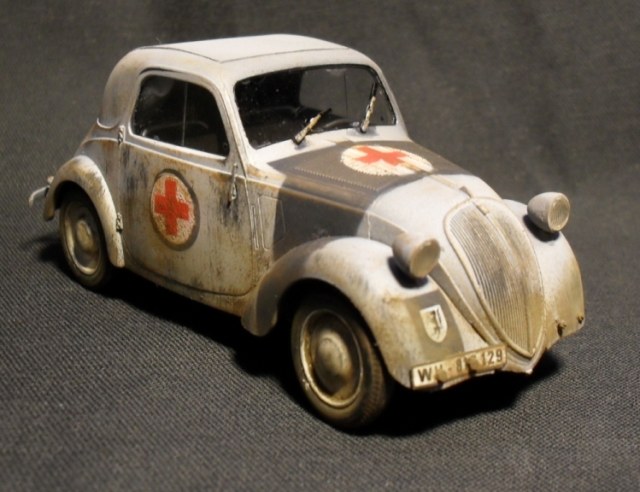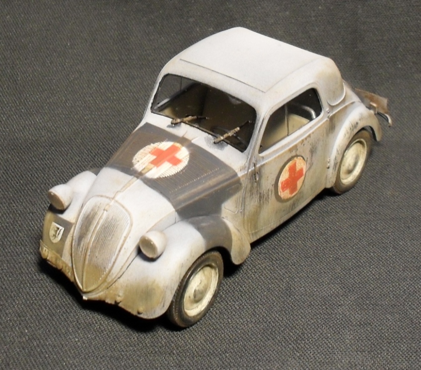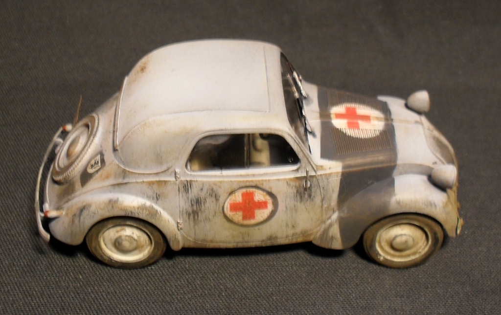 О прототипе: в 1936-м началось производство моделей СИМКА-5 ("ФИАТ-500 Тополино"), Автомобиль с четырехцилиндровым двигателем, объемом 569 cc с водяным охлаждением, смонтированным на передней оси. Радиатор был расположен позади двигателя, и за счет этого удалось ощутимо «скосить» переднюю часть автомобиля. Это давало отличный обзор для водителя. Задняя подвеска состояла из четверть-эллиптических рессор. Максимальная скорость автомобиля составляла 85 км/ч, расход топлива был около 6 литров на 100 км.