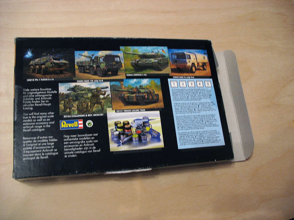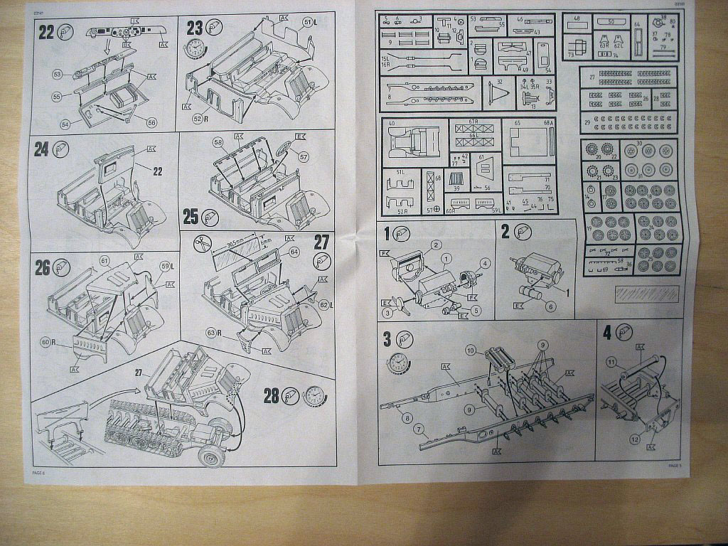 Траки даны полунаборными, типичными для Revella-а. Собирался такие для тройки, вполне приемлемо. Детализация - на уровне. Деталей много, что отмечено максимальным уровнем сложности сборки по шкале Revell-а.
