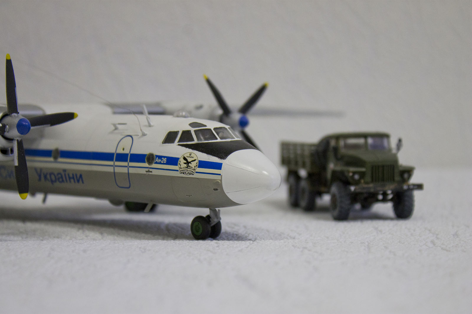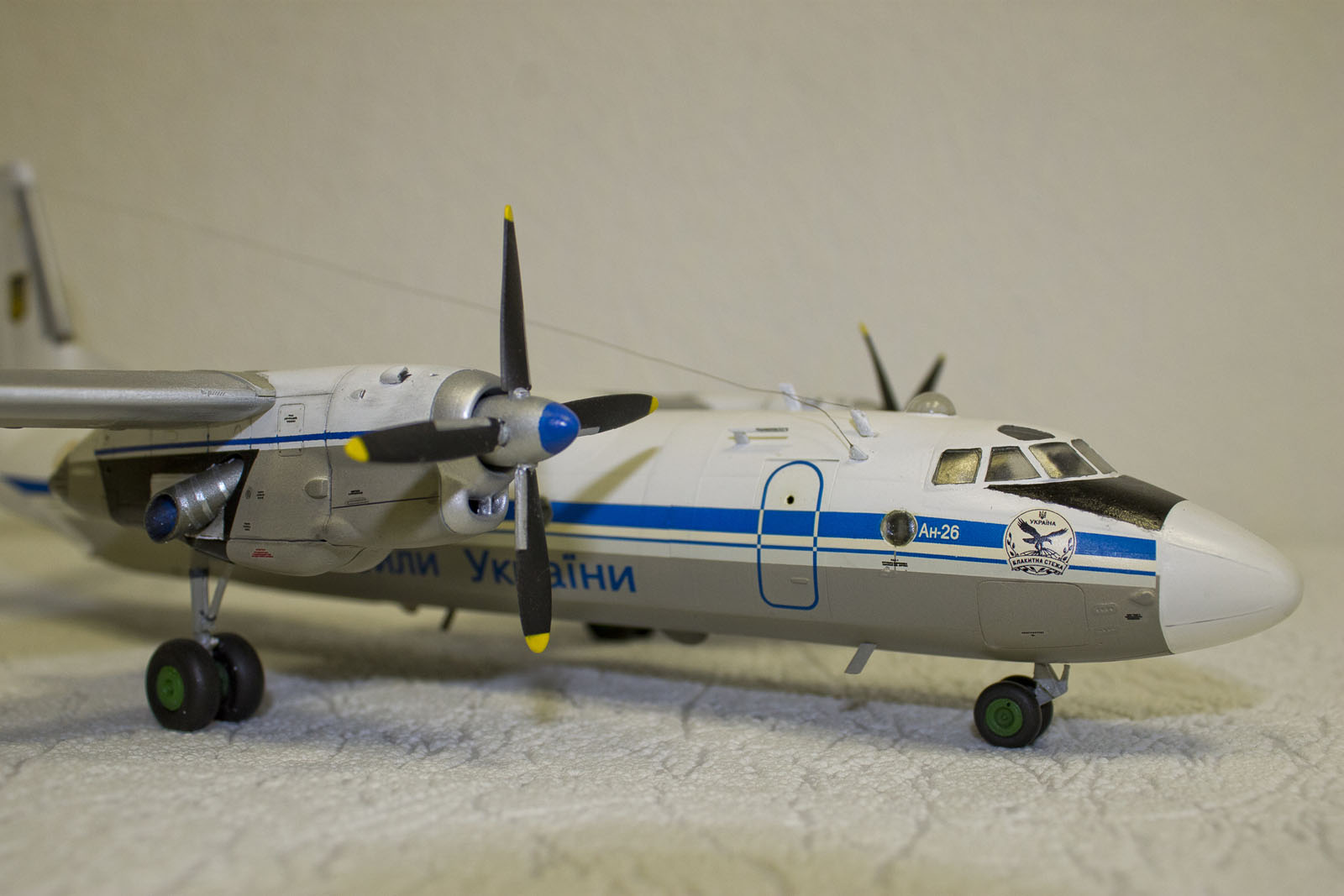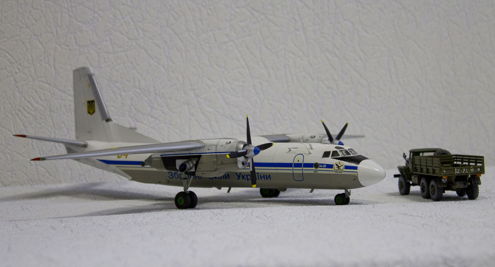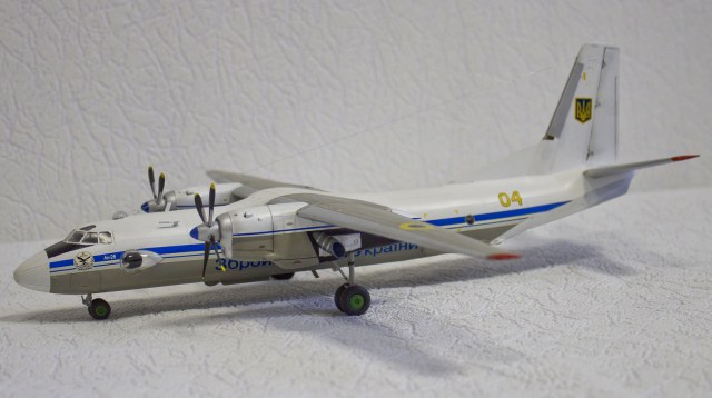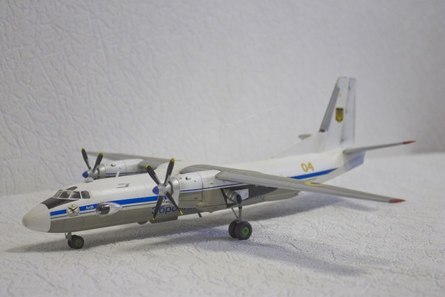 А я сделал в такой окраске и с такими ОЗ, но только Ан-32. Но, оказывается, хоть и делали Ан-32 в Киеве, на вооружении Украины только Ан-26 и Ан-30. Ан-32 есть пожарный красный только. Украинские ОЗ в тему, Ан-24, как марка, как торт Киевский. Лечу в Мин-Воды на нем и думаю, не упадет ли он от старости в Каспийское море зимой на этот раз..... вода холодная
