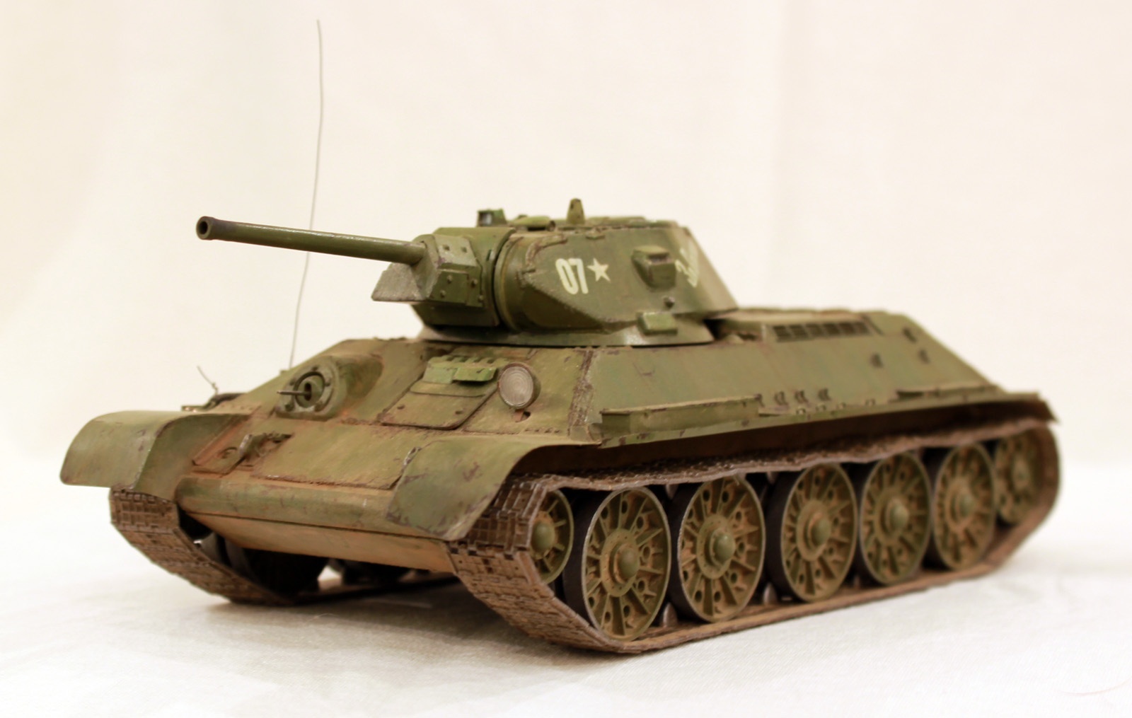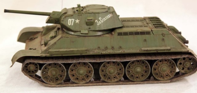 Доброго времени суток уважаемые коллеги! Хочу представить вашему вниманию свою вторую модель - Т 34 производства СТЗ. За основу взят набор от звезды и переработан с учетом замечаний по предыдущей модели и с изучением литературы. Однако данная модель имеет ряд недоработок, заметных не вооруженным глазом: уральские катки (не хватило терпения на перепил); три петли на крышке мто (поздно заметил данный косяк); неправильная бронировка прибора наблюдения командира машины (аналогично предыдущему пункту); неправильной формы передние крылья (должны быть упрощенные, но хотелось сделать круглые). Учитывая все выше сказанное на копийность относительно прототипа не претендую.