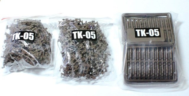 Пластик хрупкий, много облоя. Устанавливаем на матричную площадку, перед установкой траков площадку необходимо подготовить - удалить грубый облой. Подготовили, ставим заранее очищенные от облоя траки. Отверстия под шпильки в большинстве своем имеют повреждения: трещины, деформацию. При утапливании шпилек отмечаются разрывы и повреждения отверстий траков. Короче говоря, г...но еще то!