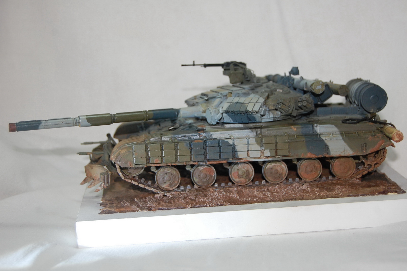 Приветствую! Представляю вашему вниманию модель основного танка Т-64БВ с КМТ-6. Корпус, траки и тралы то Скиф. Еще немного добавил от звездовской 72 (фары, пулемет, баки), блоки дз от Miniarm. Немного травленки от эдуарда. Остальное самопал. Красил аэрографом (впервые), тамией. Подставка: ЛДСП, шпаклевка, пва с песком и содой. Стройка продолжалась более 3 лет, (за это время сын вырос)), Пару раз приходила мысль выкинуть его... Но тем не менее решил выставить его здесь. Приятного просмотра!