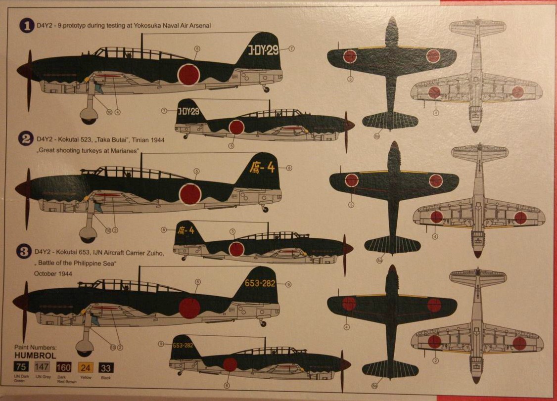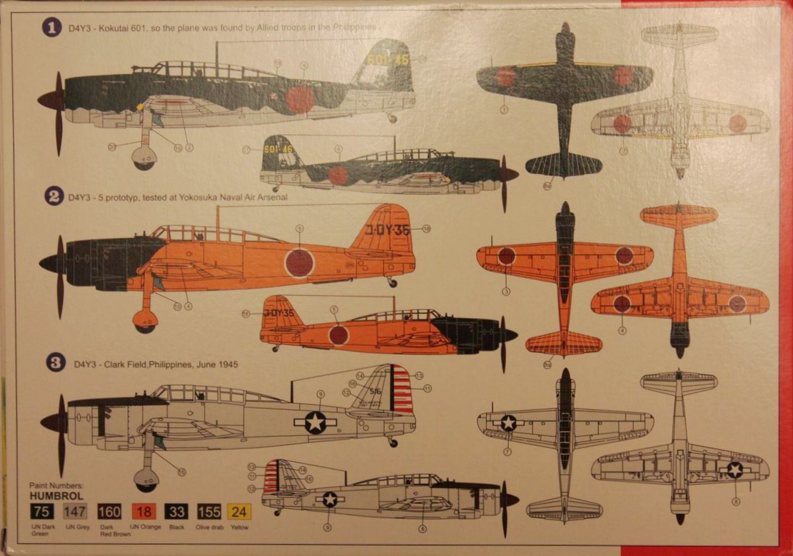 Из набора можно собрать все модификации: D4Y1, D4Y 2, D4Y2-S, D4Y3 и D4Y4. Они отличаются только коробками, декалями.