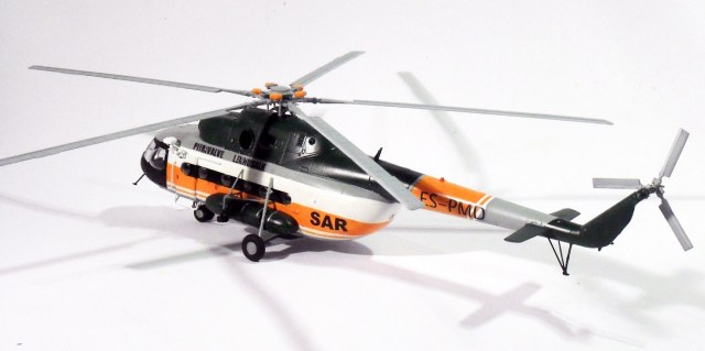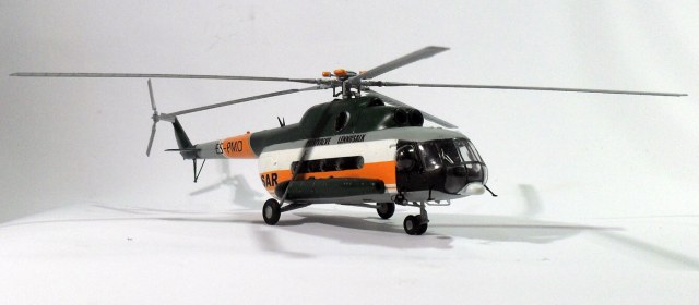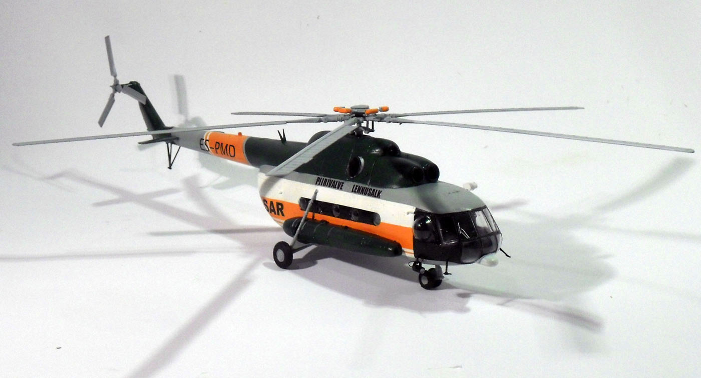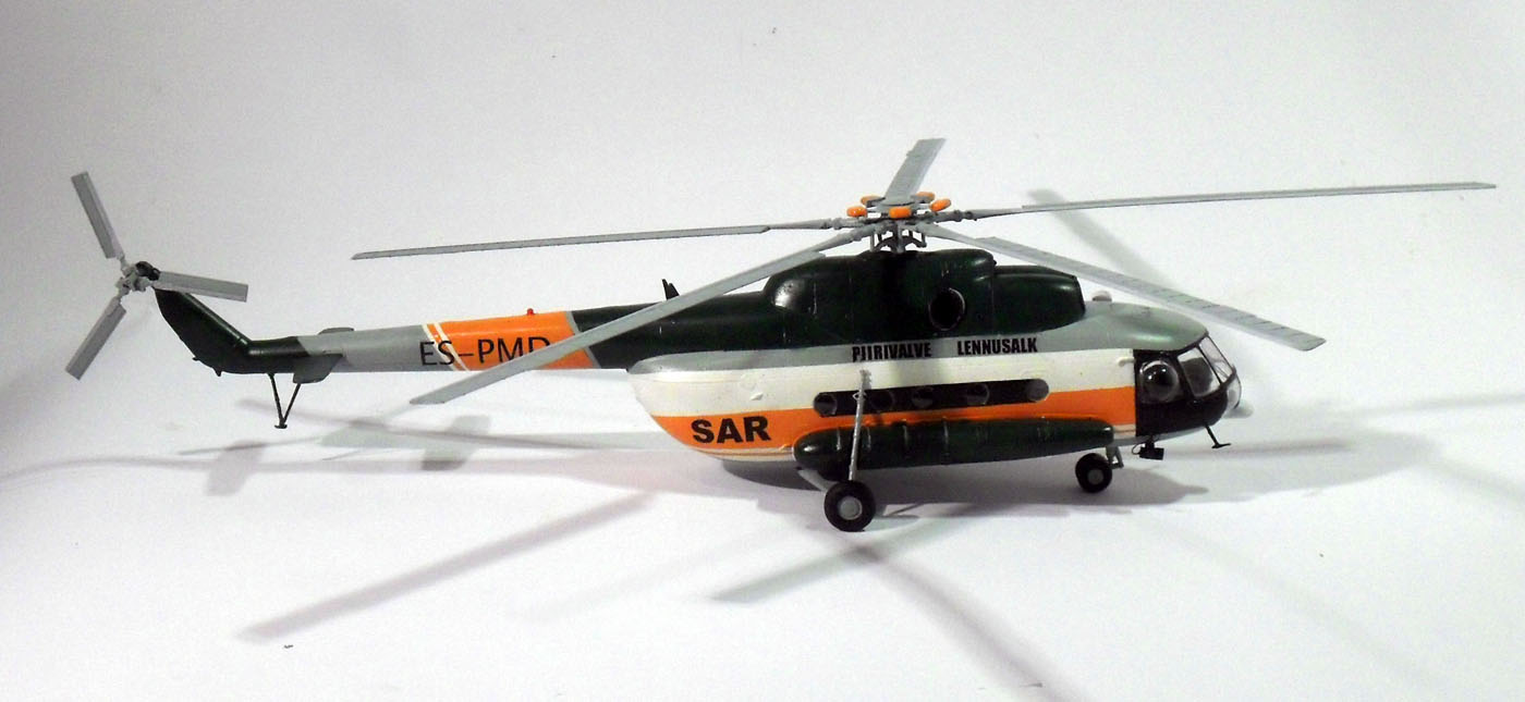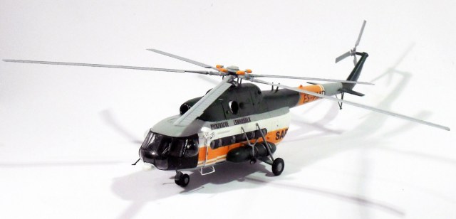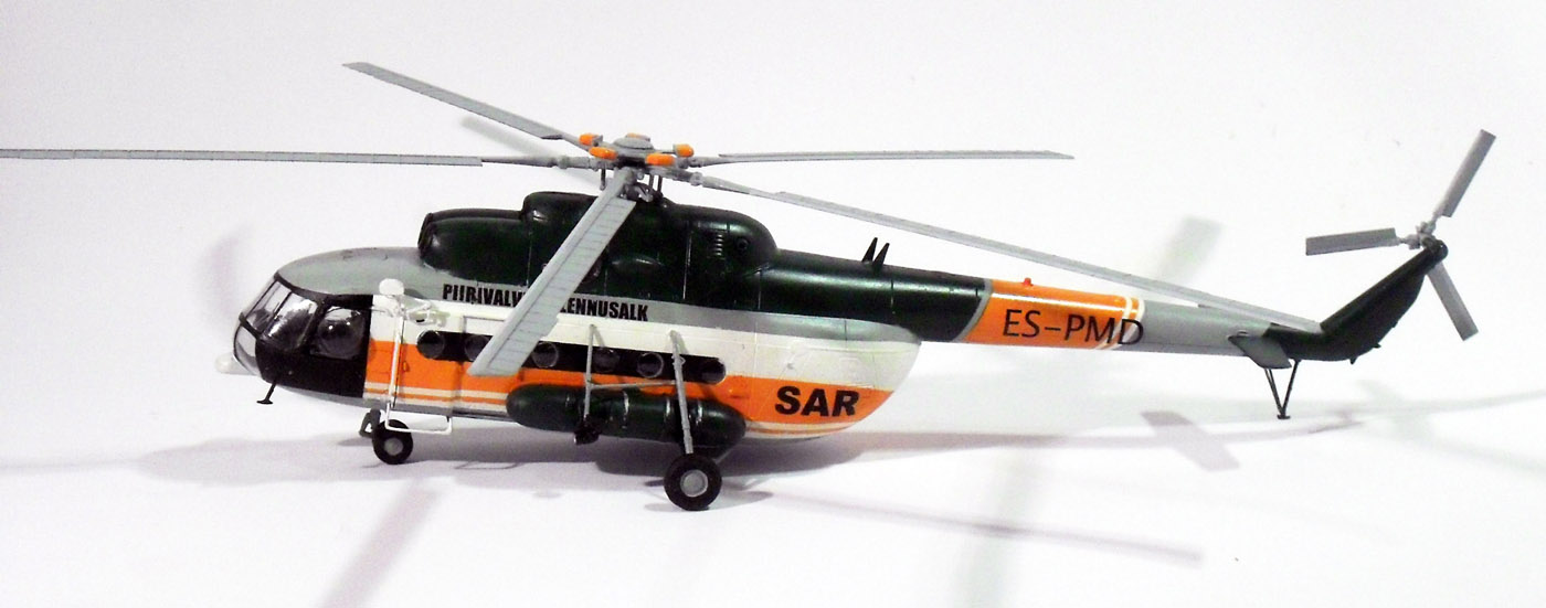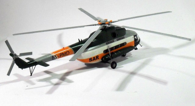 для того чтобы модель хоть чем-то похожа на прототип. Был изготовлен гаситель вибрации несущего винта ,выдавил боковые блистеры, сделал новую грузовую лебедку, внешние прожекторы и кронштейны для них, и удалены некоторые детали характерные для ми 8 мт. Остальное не могу объяснить поскольку в авиации ничего не понимаю. Декали делал самостоятельно, красил красками ModelMaster и Humbrol. Ещё хочется добавить что это моя первая модель вертолёта, раньше клепал исключительно 35-й масштаб, поэтому прошу большие табуретки не бросать