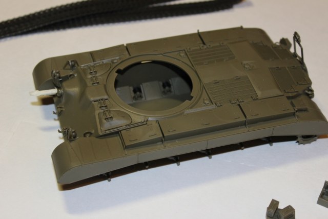 Советую сделать небольшие высветления краской XF-4 под небольшим давлением на выступающих горизонтальных поверхностях, а также на бортах башни