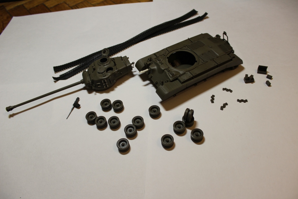 Я сейчас тоже Pershing делаю, вот думал чем покрасить лучше, защитный и оливковый "звездовский" смешал, 60%к 40% примерно. Похоже вышло на данный цвет.