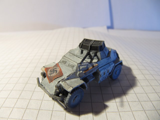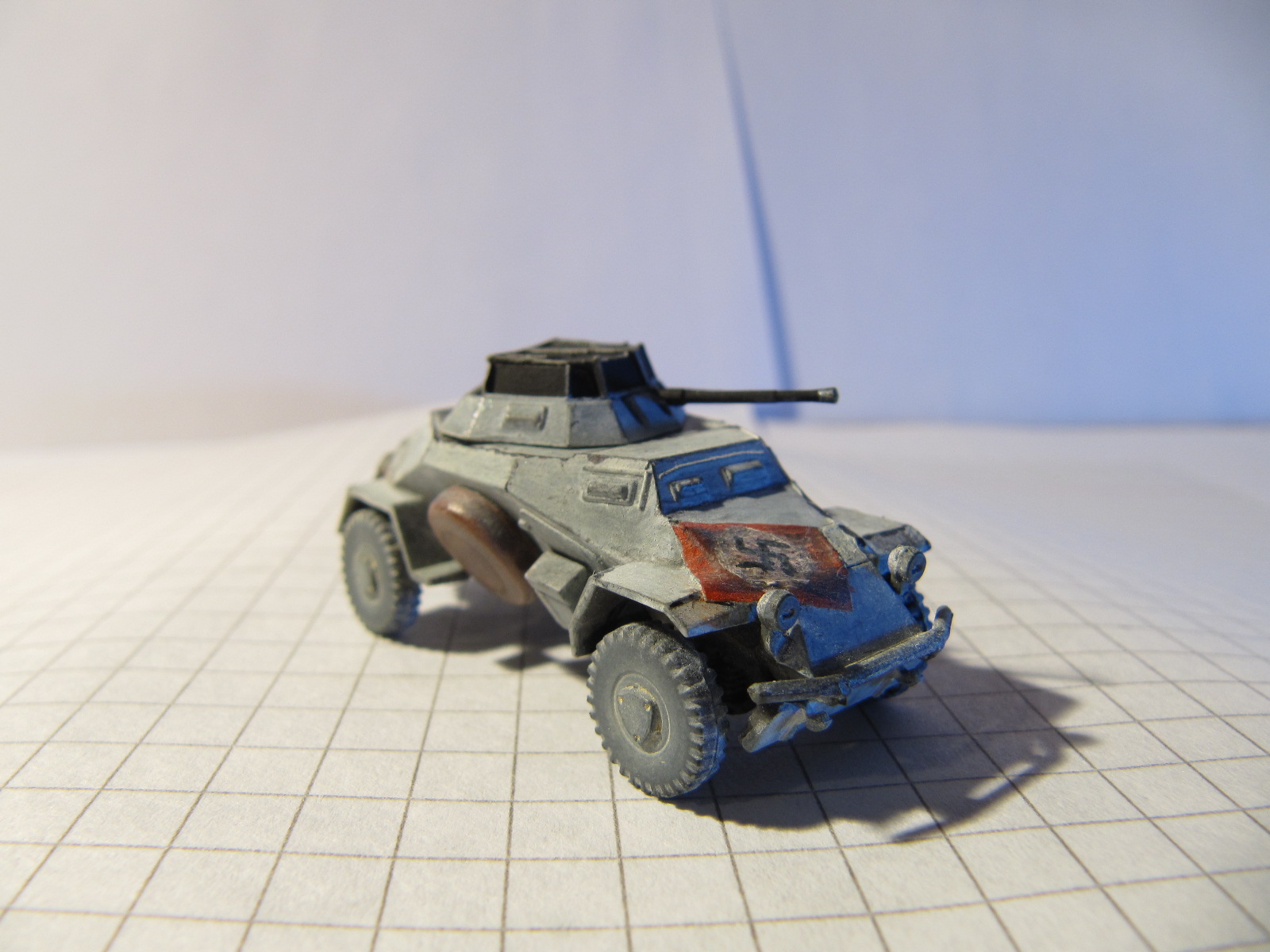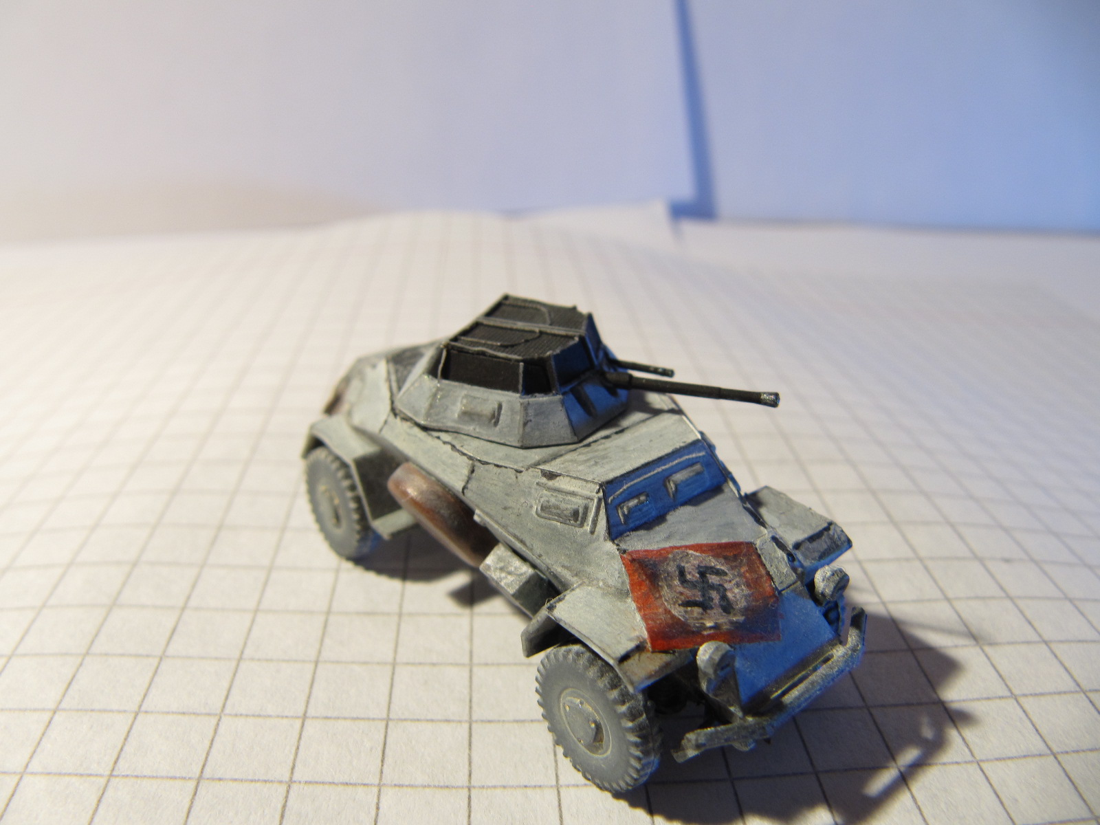 Всем привет! Маленький клопик, собирался на ура! Сначала был задут в базовый цвет германских войск, но захотелось вот попробовать зимний камок. Как получилось- судить вам. Собрал и покрасил за пару часов в подарок другу, для варгейма "Flames of War". Потому покрас считаю приемлемым для игрового. Краски валеджо, пигменты валеджо.