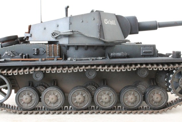Модель от Драгон. САУ со 105-мм легкой гаубицей. Набор отличный. Сборка, без проблем. Правда пришлось заменить троса на Eureka. Хотел сделать, хотя бы, кресты, но т.к. на аутентичной фото, машины с этим именем, крестов нет, то и я не стал. Хотя сомневаюсь, что не на одной из 8 машин, прошедших войсковые испытания, не было знаков национальной принадлежности.