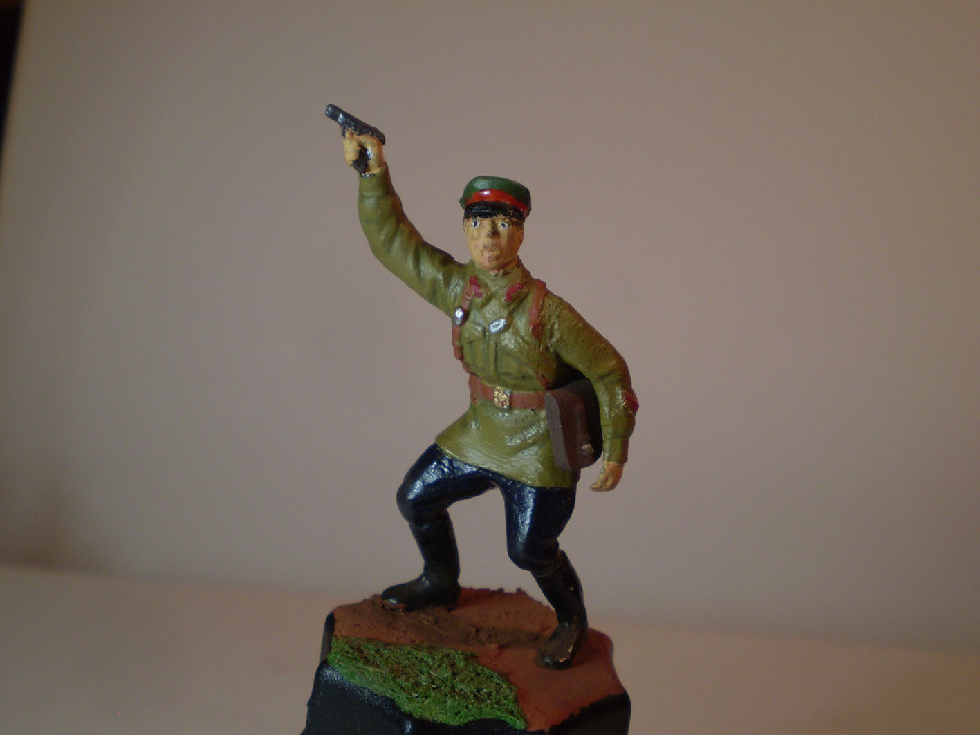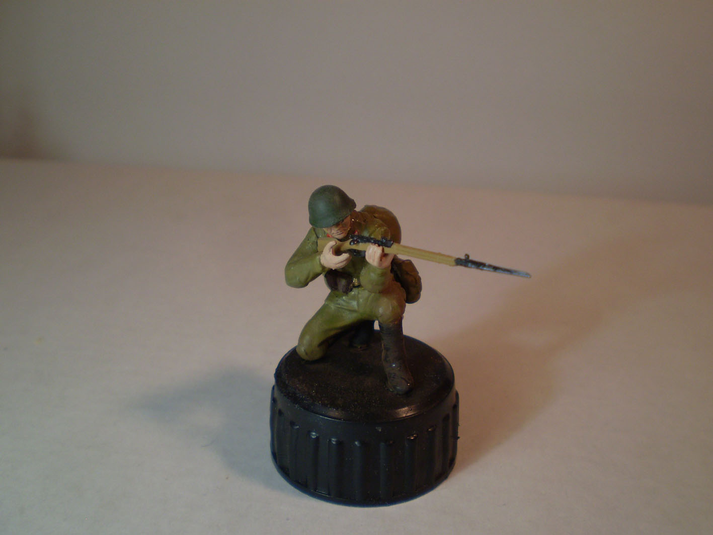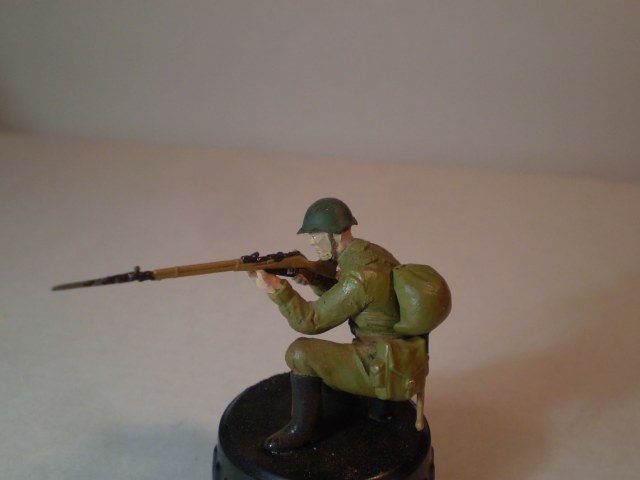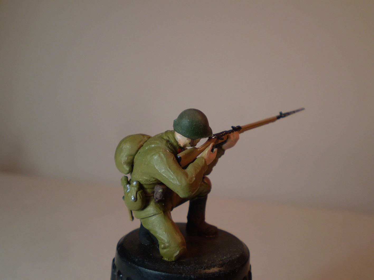 Дружище, у Вас есть аэрограф? Если нет, то не жалейте на него денег, полезнейшая вещь. Мне понравилось то, что у этих фигурок достаточно четко покрашена амуниция, есть петлицы, пряжки и т.п. Но ведь блестят, что портит все. И вот тут поможет матовый лак из аэра. Теперь о глазах. Не получилось. Уж лучше рисовать глазёнки просто черными точками, заточенной зубочисткой.