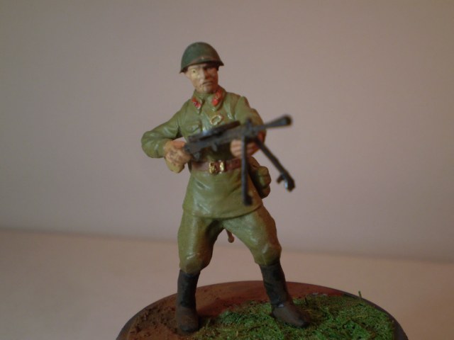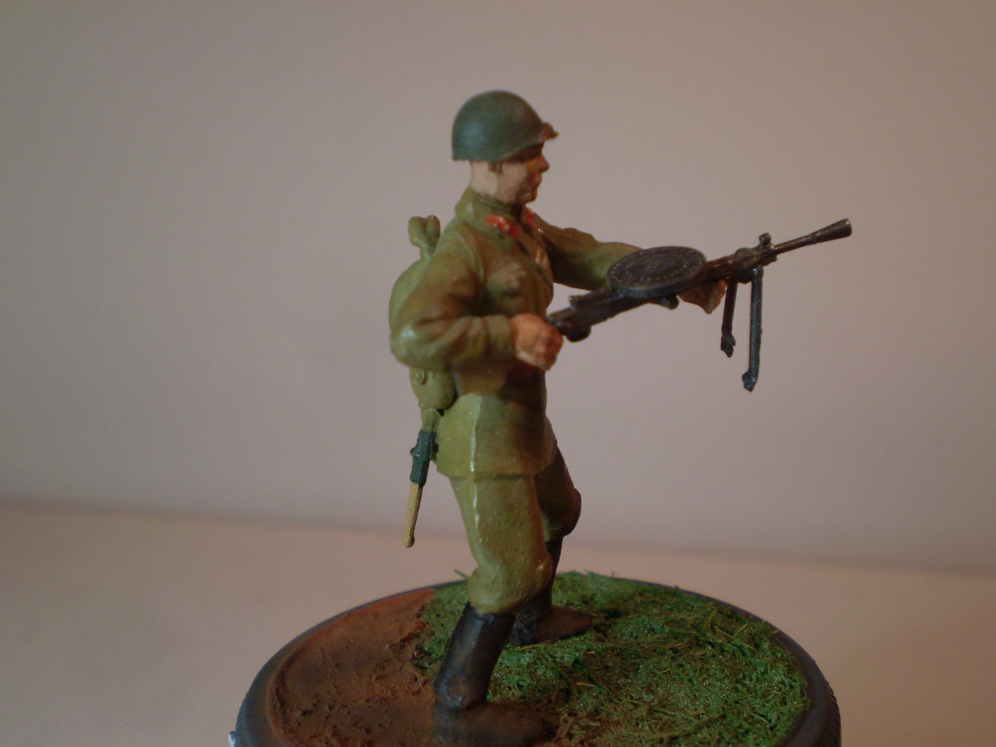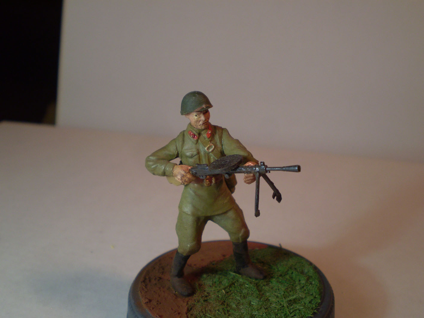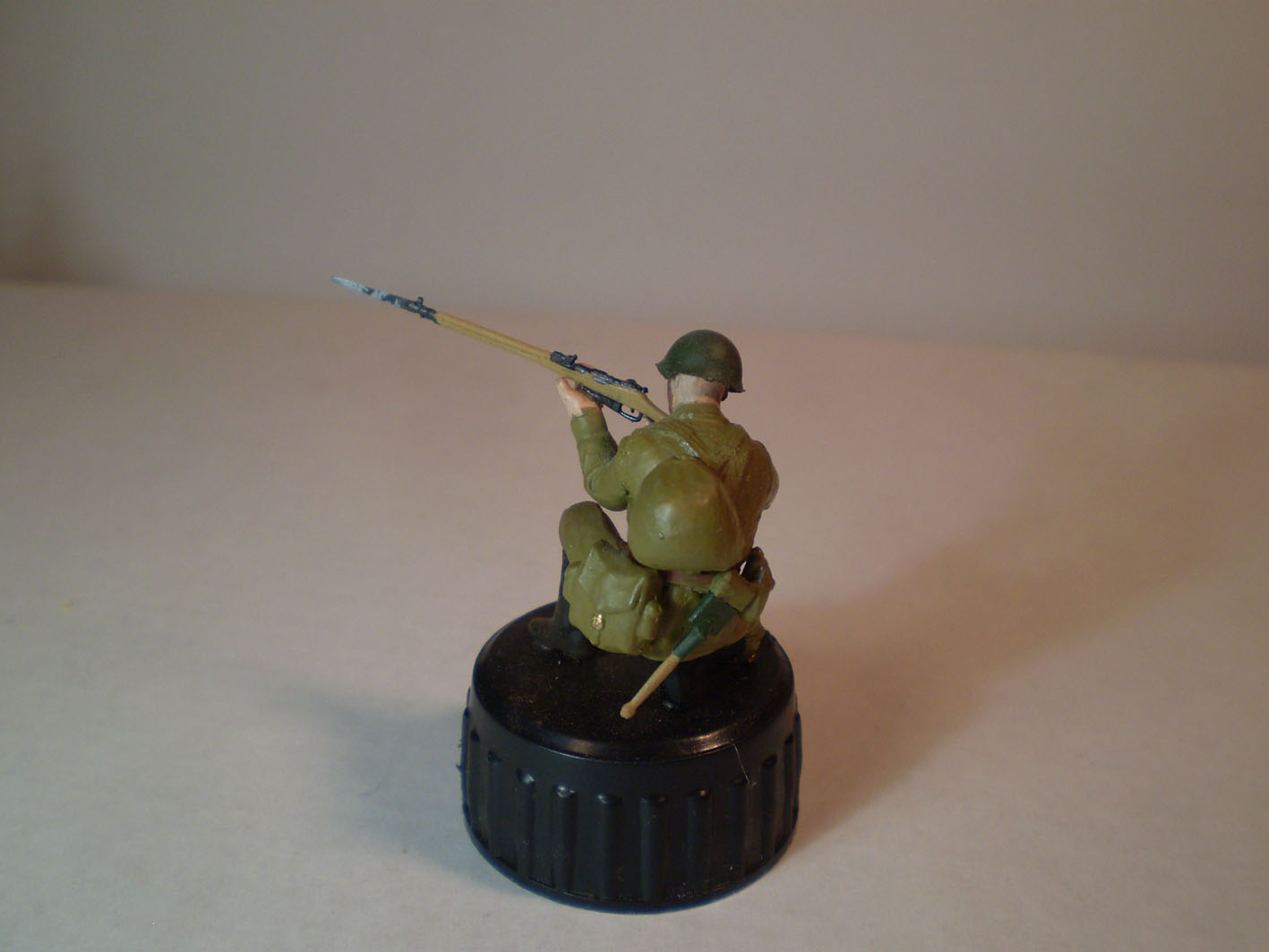 Дружище, у Вас есть аэрограф? Если нет, то не жалейте на него денег, полезнейшая вещь. Мне понравилось то, что у этих фигурок достаточно четко покрашена амуниция, есть петлицы, пряжки и т.п. Но ведь блестят, что портит все. И вот тут поможет матовый лак из аэра. Теперь о глазах. Не получилось. Уж лучше рисовать глазёнки просто черными точками, заточенной зубочисткой.