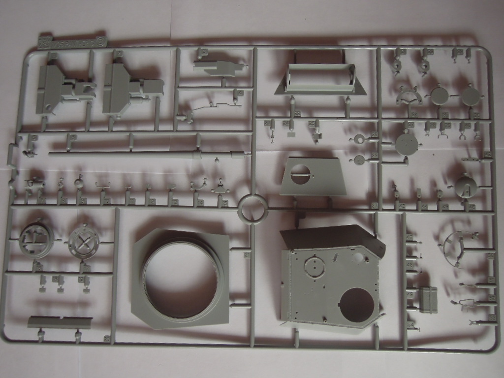 Всем привет! Вот в общем представляю вам обзор кита № 6370 (1:35) от Драгона. Набор находится в картонной коробке и состоит из 16-ти литников, каждый из которых упакован в полимерную упаковку, так же отдельно нижняя часть корпуса, инструкция, картонка с различной мелочёвкой(плата травления/два вида декали/ два вида троса/крюки/траки/прозрачный литник/ком. бошенка). В целом впечатление хорошее, качество литников на высоте, но вот плата травления очень скудная. Набор уже в работе, стыкуемость деталей отличное. Набор был добит траками friulmodel, травлением griffon model, rbmodel(ствол/антенны), троса skp, voyager(вёдра).