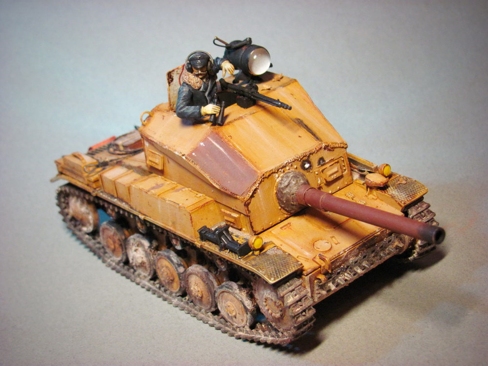 Очередная фентезийная модель на базе всем известной тамийской "Двойки". Эдакая эрзац башня, сделанная в полевых условиях. Корпус доделывал с помощью листового пластика Евергрин, окраска - кисти, масло, пастель)
