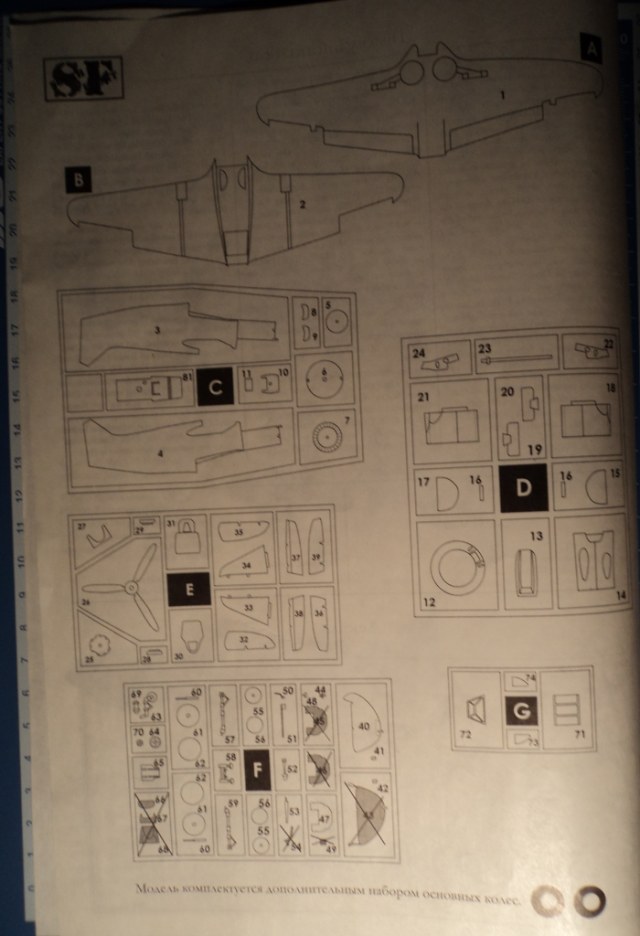 4 литника относительно неплохого пластика. Тонкая внутренняя расшивка. Кое где, проглядывается прокатанная клепка. половинки крыла даны отдельными деталями. В отдельной упаковке литник с прозрачными деталями и резиновые колеса.
