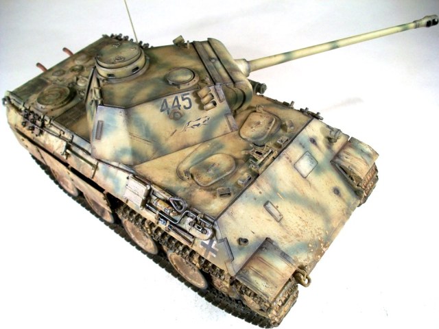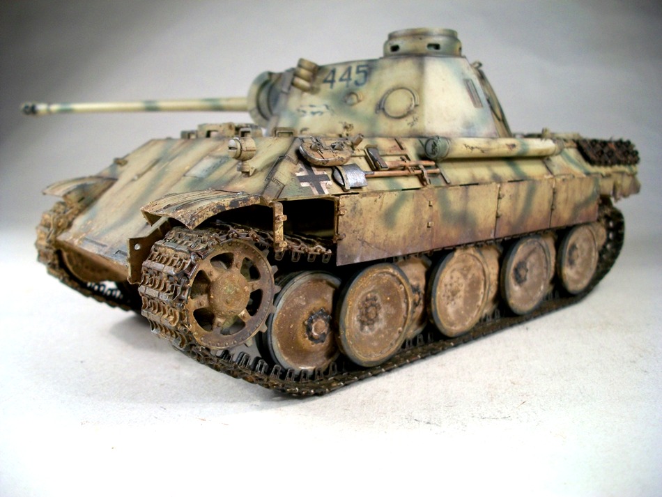 Всем привет. Наконец-то, собрал Пантерку.)) Как же без нее... Начнем с D. Курская Дуга, все смешалось - люди, кони..., точнее танки...! Дебют Пантеры там и состоялся. Нельзя сказать , что он был удачным, но мощь своей пушки и прочность лобового листа брони она показала! И в самом деле рассматривая Пантеру, первое , что бросается в глаза, это наклон, толщина лобового листа брони и внушительная, мощная, длинная пушка ( почему-то хочется сравнить ее с плетью) . Ну и сами размеры кошки тоже впечатляли, на тот момент по крайней мере. В общем кошка красива по своему и внушала уважение... Интересный факт, немцы при отступлении с позиций на первый момент, если позволяла ситуация, предпочитали пятится задним ходом, лоб все-таки на тот момент был почти не пробиваем! А вот борта и тем-более корма слабоваты, впрочем, как и у большинства танков.