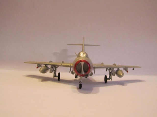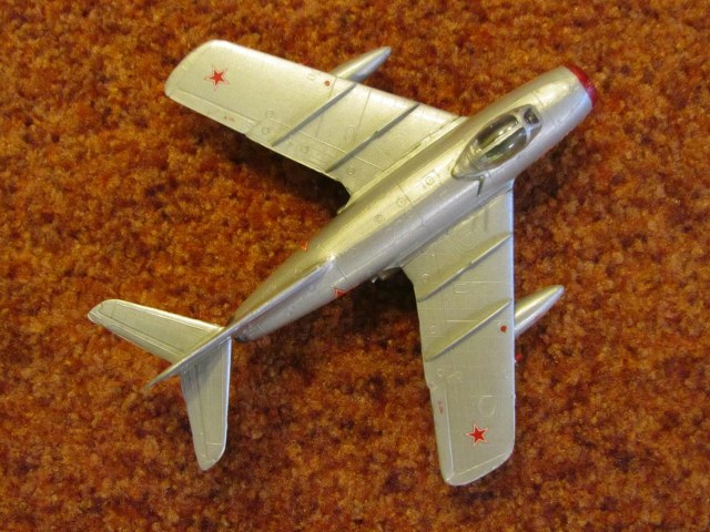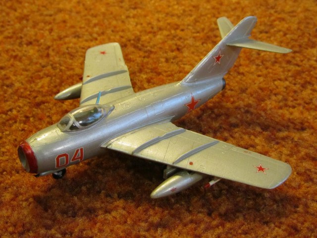 Ещё один МиГ 15-летней давности. Собирался ещё до "девятки". Название производителя говорит само за себя... Геометрия и сходимость деталей - никакие.