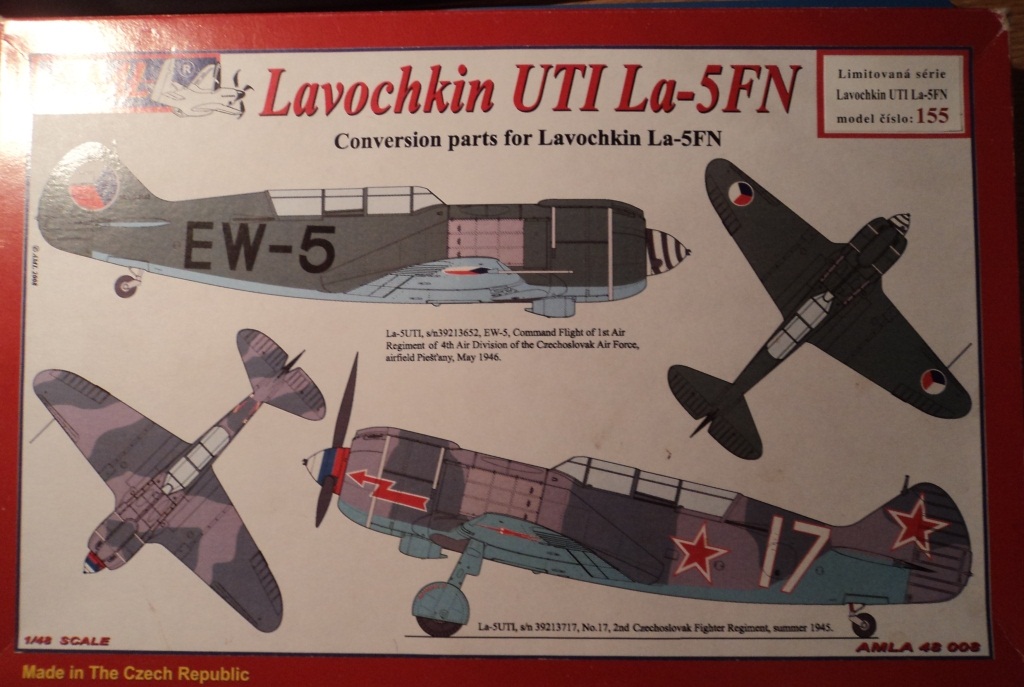 всего три набора конверсий Ла-5 УТИ (с мотором АШ-82Ф), Ла-5ФН УТИ (с мотором АШ-82ФН) и Ла-7 УТИ. Примерно набор состоит из декалей (в 7-ке нет декалей), инструкции (в 7 нету инструкции. В Ла-5 УТИ инструкция неверная дана от 72 масштаба), Травления (присутствует во всех трех наборах), и смоляных деталей. Типа кресла, рычажки и прочее. Чтобы без проблем оснастить вторую кабину. Так же во всех наборах вакушные фонари в количестве двух штук на набор. Кроме того декали на ЛаГГи. В одном из наборов декалей для Лаггов в смоляном исполнении пушка НС-37 дана. вернее ствол. Не очень качественный. Даже не просверленный. В декалях на Ла-5Ф в смоле даны патрубки, створки патрубков кольцо капота и капот с обтекателями. Это чтобы не заморачиваясь из Ла-5ФН от Звезды можно было Ф-ку получить.