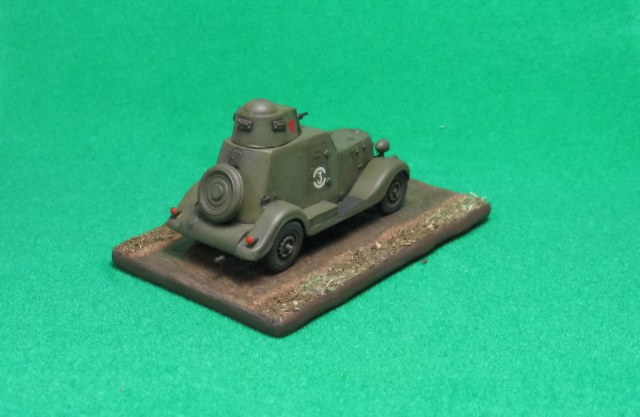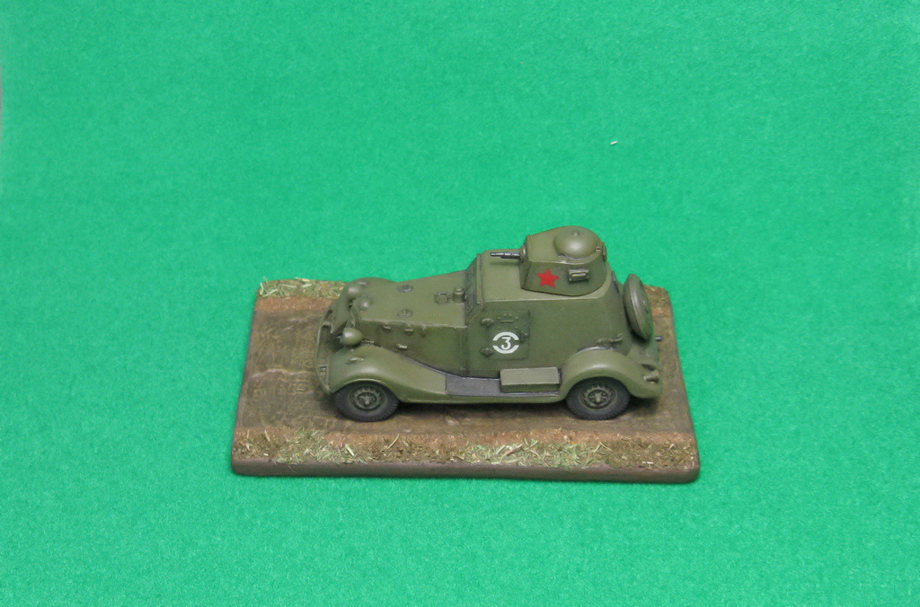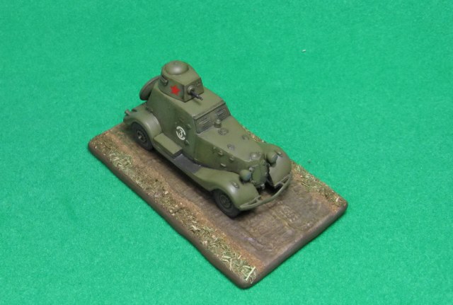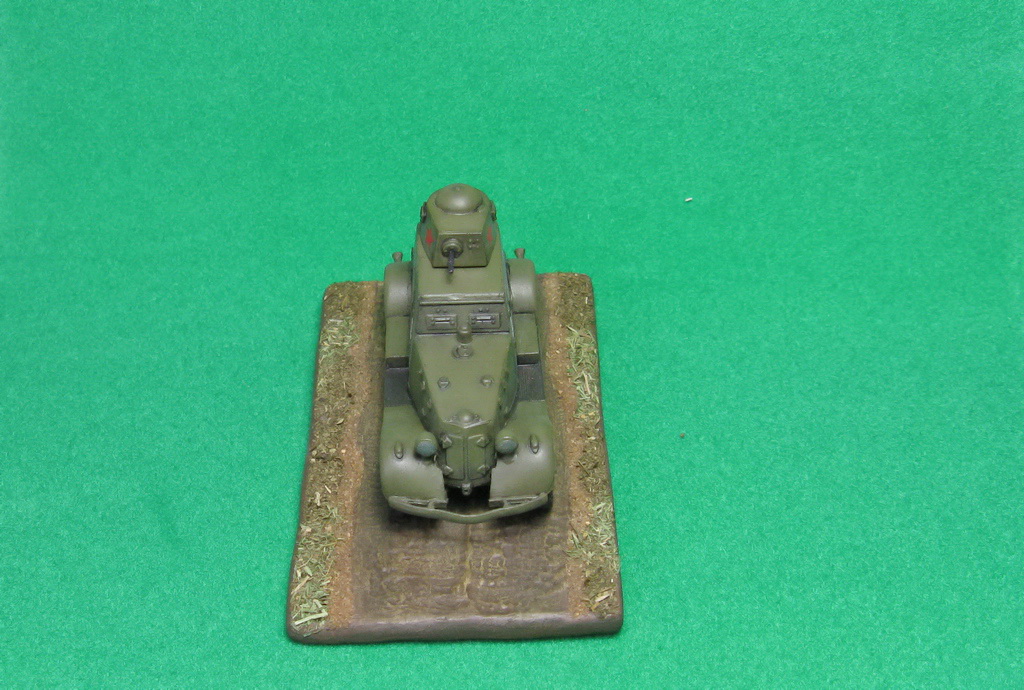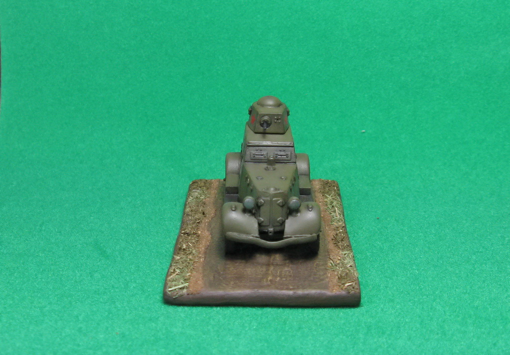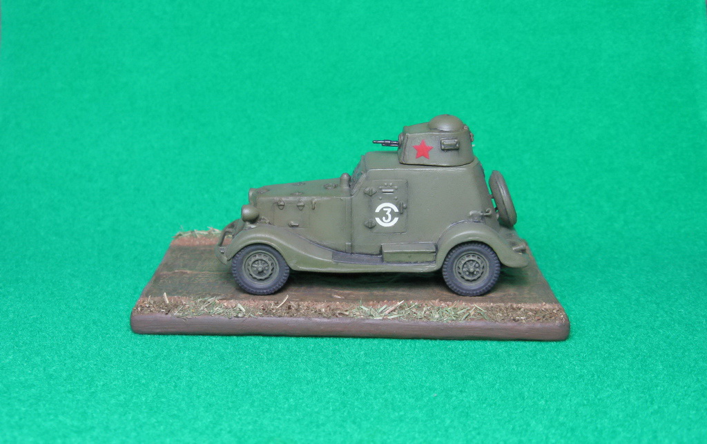 Представляю вам реинкарнацию своего БА, собранного несколько лет назад. Приклеил на место фары и колеса :) И задул в цвет, который во второй половине 30х годов назывался "табачный" (смесь зеленого с коричневым) предшественника 4БО. Декали ни какой привязки не имеют, подбирал что бы было похоже на принятую схему нанесения ОЗ .