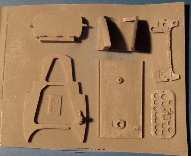 Отдельная отливка с полом, приборной панелью, перегородкой, которая находится за бронеспинкой и деталью-люком для доступа к аккумулятору (именно это и есть основная ошибка производителей ЛаГГа, у которого, в отличие от Ла-5, невозможно было посмотреть насквозь через боковые "форточки-ушки").