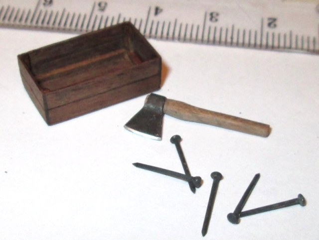 Все в масштабе относительно топора. Все сделано правильно. И конфигурация гвоздей совершенно верна.
