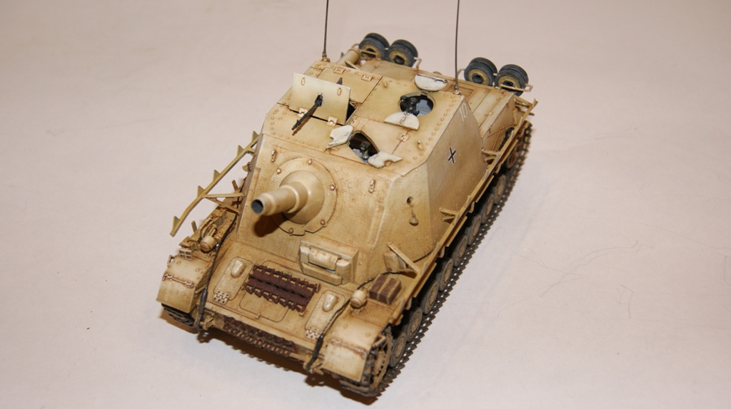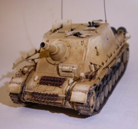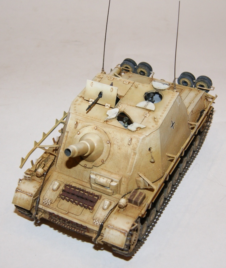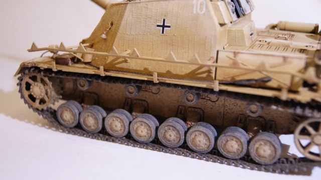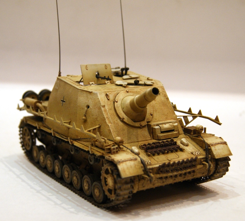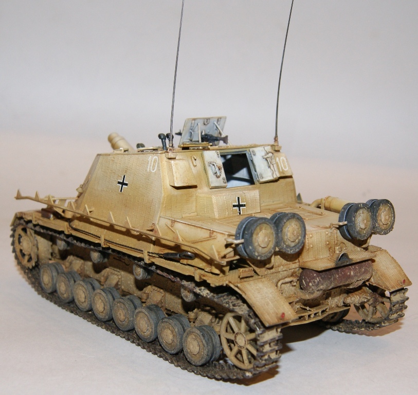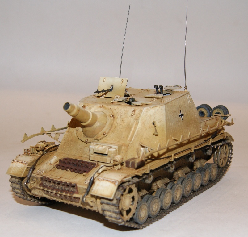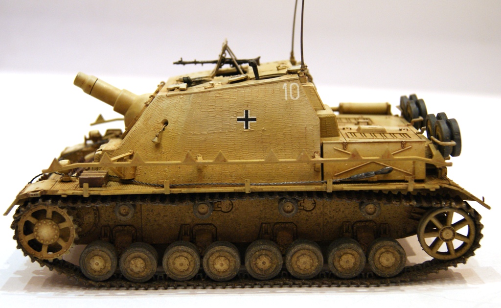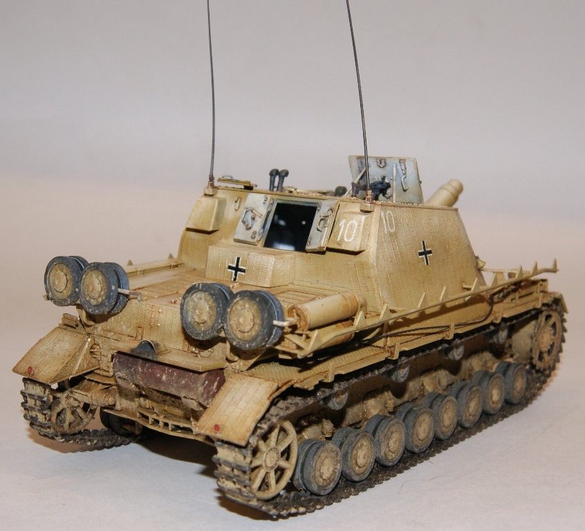 Здравствуйте, представляю на Ваш суд немецкую 150 мм САУ "Brummbär" на базе танка Т-IV фирмы DRAGON. Заинтересовала меня данная модель своей редкостью. Да, на "каропке" встречаются "Brummbär" около 10, но если податься в историю то все представленные модели образца 1944-45гг, и от образца 43г они отличаются. Фирма DRAGON (наверное первая) выпустила данную модель позднего года выпуска.